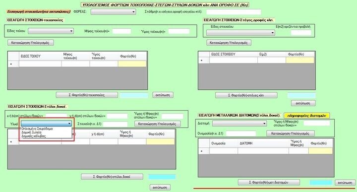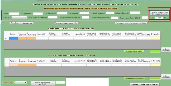 Λογισμικό(v.2.12) υπολογισμού υπέρβασης κατακόρυφων φορτίων για απαλλαγή από ΜΣΕ ν.4495