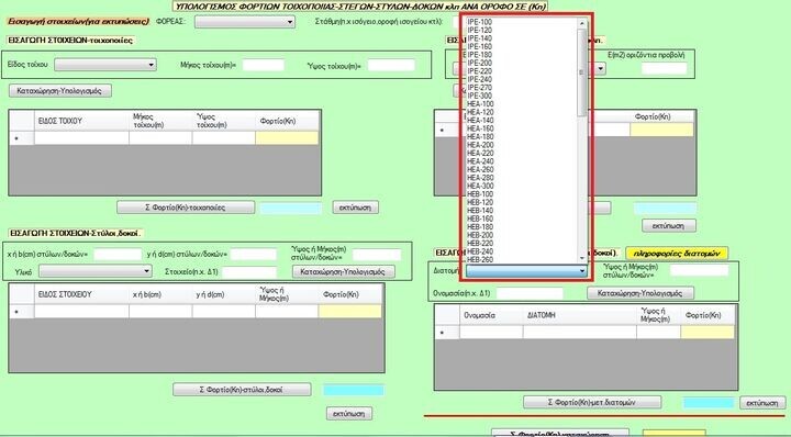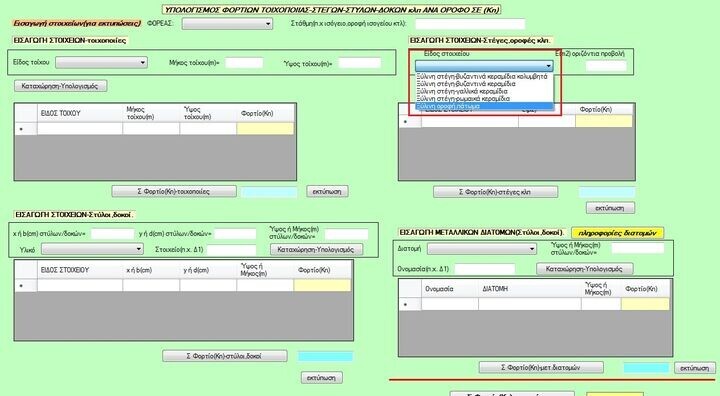 -Αναλυτικές εκτυπώσεις υπολογισμού φορτίων ανά όροφο, συγκεντρωτικές κτλ.