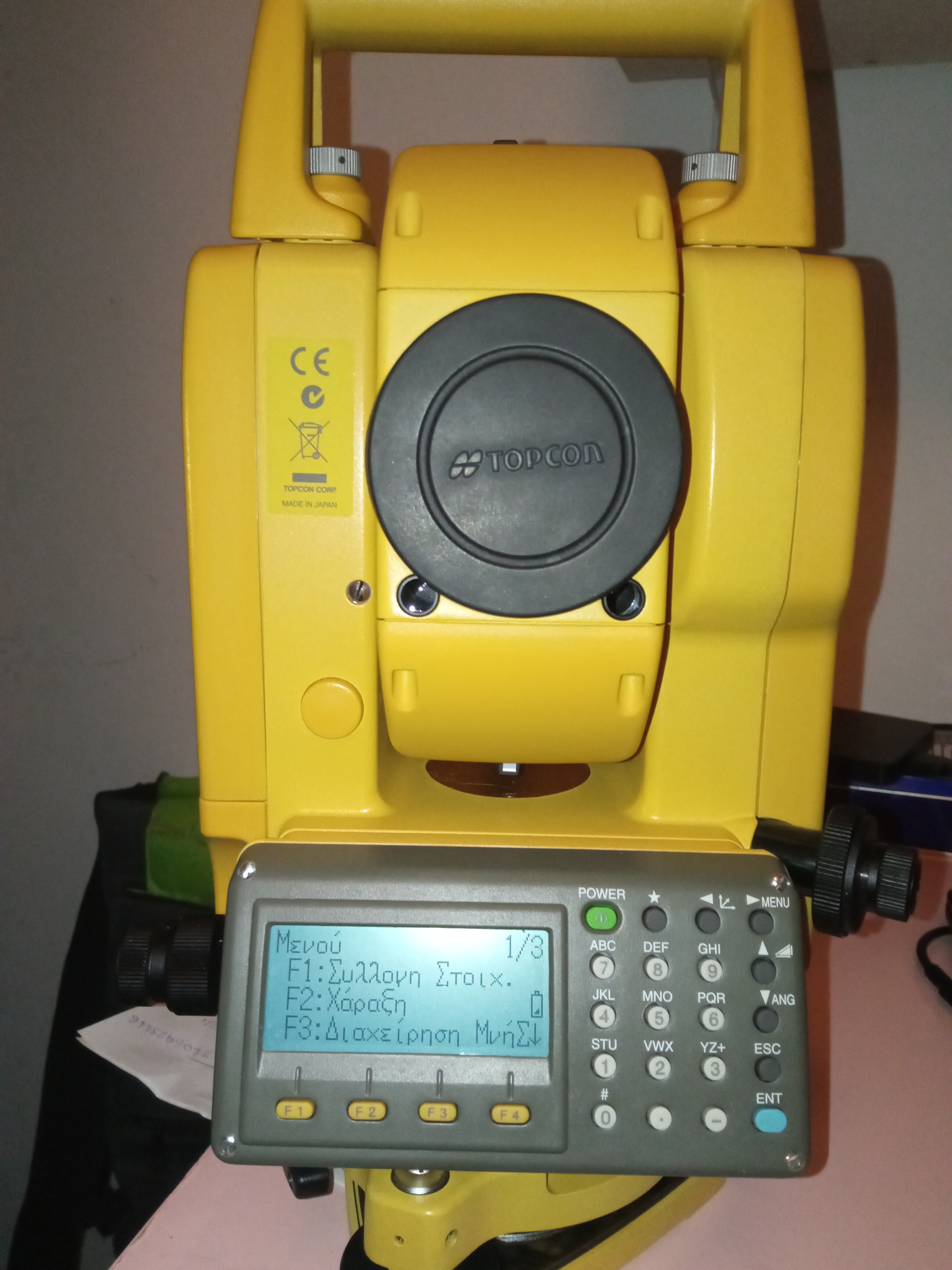 Γεωδετικός σταθμός ο οποίος δεν χρησιμοποιήθηκε ποτέ σε εργοτάξιο, με παρελόμενα : έξτρα μπαταρία,τρίποδας αλουμινίου, τηλεσκοπική ράβδος (2,15μ) με πρίσμα topcon με την θήκη μεταφοράς του, τριποδίσκος mini, φορτιστής και καλώδια μεταφοράς δεδομένων. Τηλέφωνο επικοινωνίας 6988329548. Περιοχή Αθήνας.