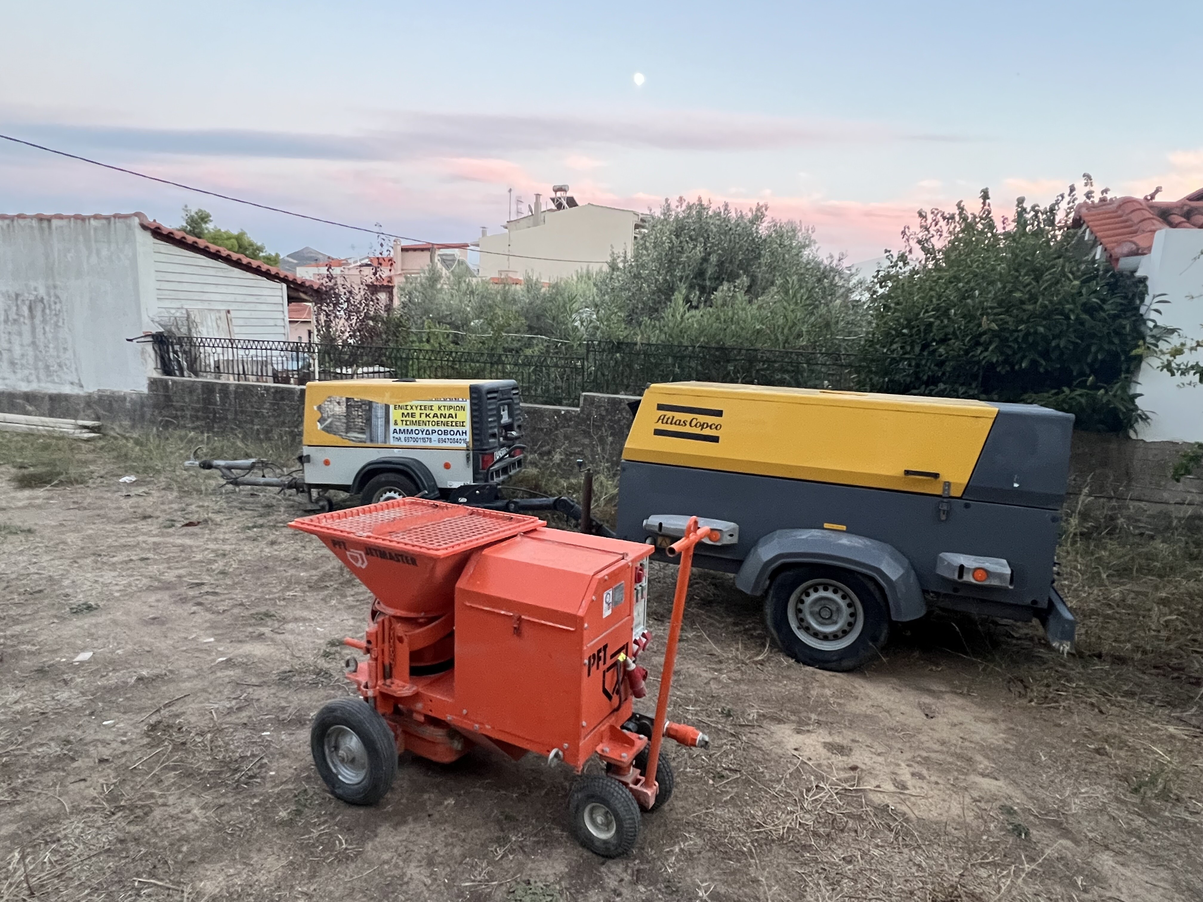 Ενοικιάζονται μηχανήματα γκαναϊτ (gunite) με χειριστή . Κομπρεσέρ μαζί με αλιβα ή το κάθε ένα ξεχωριστά . Μεταφορά σε όλη την Ελλάδα.