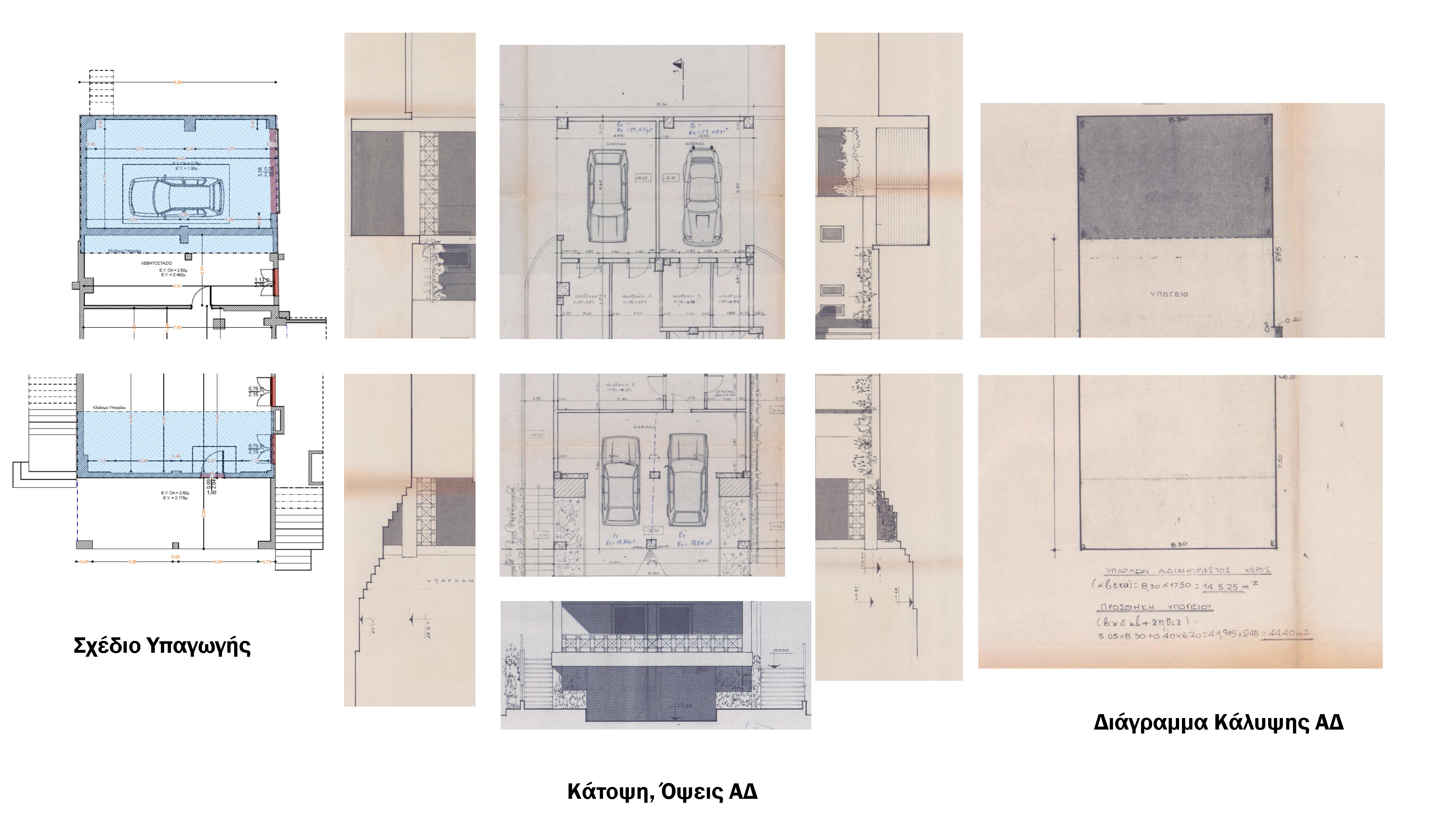 Καλησπέρα συνάδελφοι , σε παρούσα προσπάθεια κοινής υπαγωγής ολόκληρης πολυκατοικίας ( κοινόχρηστα + ΟΙ) έχω αυτά τα θέματα σε σχέση με το υπόγειο, για κάποια έχω μια υποψία απάντησης αλλά θα θελα την άποψή σας. Το πιο σημαντικό είναι σε σχέση με αυτό που ανεβάζο στο συνημμένο. Μιλάω για τα δύο τμήματα που σημειώνω με μπλε διαγράμμηση στο σχέδιο της υπαγωγής. Η κουβέντα αφορά χώρο που στην ΑΔ χαρακτηρίζεται υπόγειος. Στην ΟΑ (προσθήκης καθ ύψος και κατ'επέκταση πολυκατοικίας) το σχέδιο του υπογείου (στην πραγματικότητα ισόγειο) φαίνονται δύο χώροι σαν ημιυπαίθριοι που προορίζονται για γκαραζ (ο ένας με τμήμα των θέσεων στάθμευσης Ρ1 Ρ2 και ο άλλος με τις Ρ3,Ρ4. Αυτοί οι χώροι όπως φαίνεται τώρα είναι κλειστοί και στην ΑΔ ήταν ανοιχτοί. Ο χαρακτηρισμός GARAGE στους χώρους υπο συζήτηση παραπέμπει βέβαια σε κλειστό χώρο. Ο ένας από τους δύο (με τις Ρ3,Ρ4) στην όψη έχει γκαραζόπορτα. Ο άλλος είναι σκιερός οπότε δεν φαίνεται να έχει. Στο σχέδιο του διαγράμματος κάλυψης ο χώρος υπο εξέταση με τις Ρ1Ρ2 φαίνεται να μετριέται στον τότε υπάρχοντα αδιαμόρφωτο χώρο υπογείου και ο Ρ3Ρ4 στην προσθήκη της άδειας. Ο υπόγειος χώρος του υπογείου και από τις δύο μεριές επι του παρόντος είναι ανεξάρτητος με πρόσβαση από τον ακάλυπτο. Ενώ στην ΑΔ είχε πρόσβαση μέσω κλιμακοστασίου. Ο υπόγειος χώρος δεν έχει οριζόντιες , είναι κοινόχρηστος. Το 1ο θέμα λοιπόν που προκύπτει είναι το προφανές: τα μετράω για ΥΔ , για Λοιπή Παράβαση ή για τίποτα από τα δύο; Το 2ο Θέμα είναι όπως φαίνεται στις όψεις (τομές βασικά είναι) εκεί που έχω αριστερά δεξιά σκάλες και διάδρομο στον ακάλυπτο , στην ΑΔ ήταν μπαζωμένες απο κάτω και τώρα έχουν υλοποιηθεί απλώς ως δύο αμφιέρειστες σκάλες, με αυτές και τον διάδρομό τους ελεύθερο ανοιχτό χώρο από κάτω. Επίσης έχουν υλοποιηθεί μετακινημένες. Αυτές ως τι τις υπάγω; Έχουν το θέμα του ξεμπαζόματος και το θέμα τις αλλαγής διάστασης/μετακίνησής τους. Το 3ο θέμα είναι Γενικά επειδή κάνω κοινή υπαγωγή με τις ΟΙ και λοιπά κοινόχρηστα έχουν προκύψει διάφορες λοιπές παραβάσεις από άλλα πράγματα. Οπότε μπορώ κάλιστα αν το 1ο θέμα ειναι ΛΠ , να μπει σε φκ με υπόλοιπες ΛΠ με αναλυτικό χωρίς να ασχοληθώ με μειωτικούς συντελεστές;; Τον οποίο μειωτικό συντελεστή (0,5) δεν είμαι σίγουρος αν έχω γιατί στην παρούσα κατάσταση δεν τηρεί ο υπόγειος χώρος το κριτήριο του 1.5 μέτρο του ΓΟΚ85
