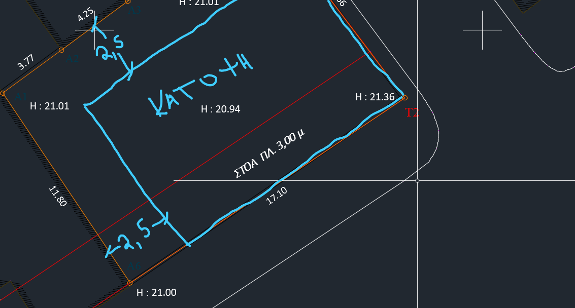 Καλημέρα σας αγαπητοί συνάδελφοι, Είμαι νέος μηχανικός και βρίσκομαι στη διαδικασία εκπόνησης αρχιτεκτονικής μελέτης σε οικόπεδο που περιέχει παρόδια στοά. Παρακάτω έχω κάποια ερωτήματα σχετικά με τις στοές και τις χρήσεις αυτών καθότι κάποια πράγματα δεν μου είναι ξεκάθαρα απο τη μελέτη του ΝΟΚ. Όπως θα δείτε και στις φωτογραφίες που έχω επισυνάψει, στο τοπογραφικό του οικπέδου υπάρχει παρόδια στοά πλάτους 3 μέτρων και μήκους 17,10 μέτρων. Επίσης, έχω επισυνάψει και σκαρίφημα με το αποτύπωμα μιας πρώτης σκέψης της κάτοψης. Ερώτημα 1: Η κατασκευή της στοάς είναι υποχρεωτική σε όλο το μήκος και σε όλο το πλάτος της?? 1α) σχετικά με το μήκος της, θέλω ν αφήσω απόσταση 2,5 μέτρων απο το γειτονικό οικόπεδο, πράγμα που σημαίνει οτι η όψη του κτηρίου μου θα έχει μήκος 14,60μ και όχι 17,10μ. Σ αυτά τα 2,5 μέτρα που θέλω να αφήσω απο το γείτονα πρέπει να κατασκευαστει στοά?? 1β) σχετικά με το πλάτος της, η στοά που θα κατασκευαστεί πρέπει να έχει πλάτος 3 μέτρα ή μπορώ να 'τραβηχτώ' και πιο μέσα, δηλ είτε μικρότερο πλάτος(πχ 2,5μ), είτε πλάτος 3 μέτρων άλλα πιο μέσα στο οικόπεδο(πχ 1 μέτρο μέσα απο την οικοδομική γραμμή)?? Ερώτημα 2: έστω οτι σχεδιάζω στοά μήκους 17,10μ ή 15,00μ(το τελικό της μήκος θα καθοριστεί και απο τι θα μου απαντήσετε παραπάνω). Αυτή λοιπόν η στοά, πρέπει να στεγάζεται σε όλο το μήκος της?? Ή μπορεί να είναι και διακοπτόμενη?? πχ αν το συνολικό της μήκος είναι 15 μέτρα, μπορώ να σχεδιάσω στοά μήκους 7 μέτρων, 3 μέτρα κενό(κοιτάζω πάνω και βλέπω ουρανό) και συνεχίζω με 5 μέτρα στοάς? **σε περίπτωση που δεν χρειάζεται να είναι στεγασμένη σε όλο το μήκος της, μπορώ να έχω κάποια αρχιτεκτονική προεξοχή(ερκερ?) στα σημεία που δεν στεγάζεται?? Ερώτημα 3: ενημερώθηκα οτι αν η στοά εχει υποστηλώματα στο όριο της οικοδομικής γραμμής μετράει στην κάλυψη, ενω αν είναι προβολική δεν μετράει. ισχύει?? Ερώτημα 4: μπορώ να βγάλω μπαλκόνι(πρόβολο?) εκτός της οικοδομικής γραμμής, μπροστά απ τη στοά ίση με το 1/10 του πλάτους του δρόμου?? Αυτά. Η βοήθεια σας μου είναι πολύτιμη. Σας ευχαριστώ εκ των προτέρων.