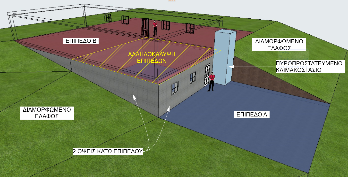 Καλημέρα Didonis και σ' ευχαριστώ για την άμεση απάντηση. α) Όταν λες ότι θα είμαι ΟΚ εννοείς ότι μπορώ να τα μελετήσω ώς 2 ξεχωριστά μονώροφα δηλαδή? Και αν ναι, τότε β)πιστεύεις ότι θα ίσχυε το ίδιο και στην περίπτωση που το κάτω κτίριο είχε 2 όψεις εμφανείς αντί για μία, όπως φαίνεται στην παραλλαγή που σου παραθέτω? και τέλος, γ) εφόσον ισχύουν τα α και β, θα μπορούσα να συνδέσω τα δύο επίπεδα με κάποιο εξωτερικό πυροπροστατευμένο κλιμακοστάσιο, χωρίς όμως να θεωρηθεί τελικά το κτίριο πολυώροφο?