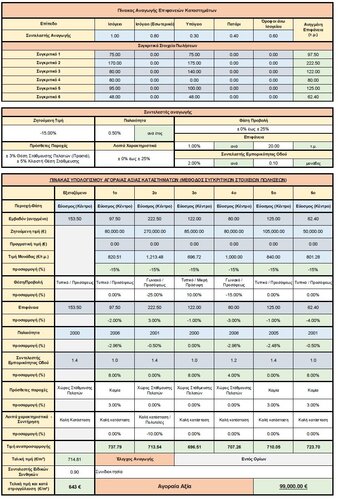 Υπάρχει δυνατότητα εισαγωγής μέχρι 6 συγκριτικών στοιχείων σε κάθε περίπτωση. Το φύλλο δεν είναι κλειδωμένο, οπότε προσέχετε να μην σβήσετε τους τύπους.