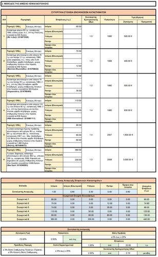 - Στους πίνακες υπολογισμού των αξιών, πλέον χρειάζεται άμεση παρέμβαση του εκτιμητή μόνο στα πεδία της "Θέσης - Προβολής", των "Πρόσθετων Παροχών" και των "Λοιπών Χαρακτηριστικών - Συντήρησης"