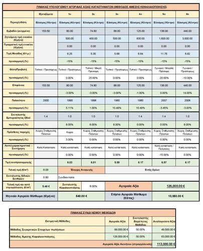 - Στον πίνακα υπολογισμού με τη μέθοδο της Άμεσης Κεφαλαιοποίησης προστέθηκε και ο υπολογισμός του Αγοραίου Μισθώματος.
