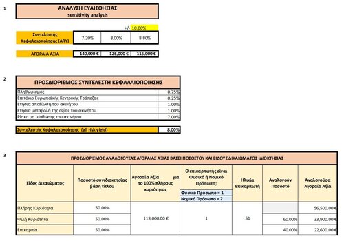 - Δημιουργήθηκε νέα καρτέλα "Χρήσιμα Εργαλεία", όπου μπορείτε να βρείτε εργαλεία Ανάλυσης Ευαισθησίας, εργαλείο αναλυτικού προσδιορισμού του Συντελεστή Κεφαλαιοποίησης, εργαλείο προσδιορισμού αναλογούσας Αγοραίας Αξίας βάση του ποσοστού και του είδους δικαιώματος ιδιοκτησίας (πλήρης κυριότητα, ψιλή κυριότητα, επικαρπία)