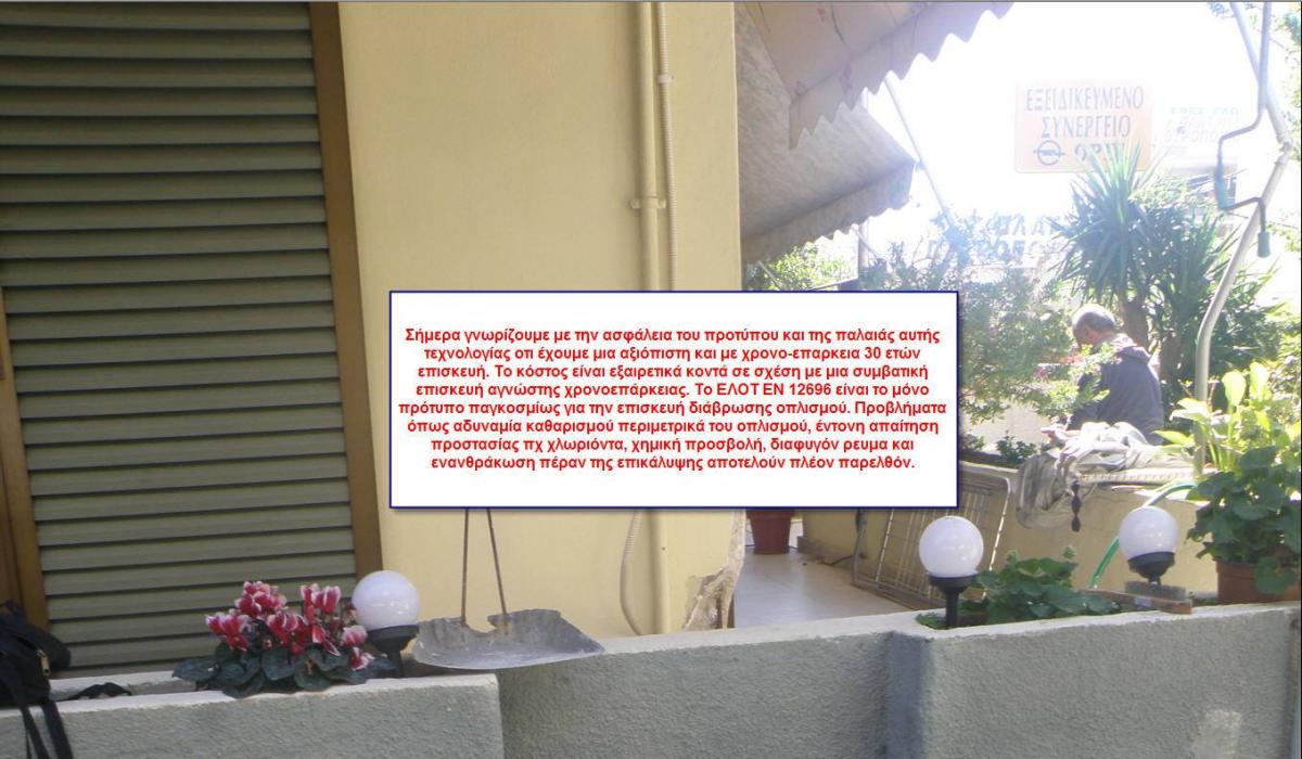 Ροδοπουλος Δημοσιεύτηκε April 24, 2017 at 05:32 πμ Συγγραφέας Δημοσιεύτηκε April 24, 2017 at 05:32 πμ Να ρωτήσω κάτι σχετικά με τον σωλήνα.Πέραν το ότι βρέθηκε μέσα σε πέδιλο συνείσφερε στην διάβρωση με κάποιο τρόπο? Γιατί βλέπουμε οτι ''πάσχει'' από όλα (χλωριώντα ενανθράκωση κτλ) ο οργανισμός υπήρχαν χλωριόντα στην μάζα του σκυροδέματος και ο σωλήνας έδινε διαφυγόν ρεύμα.