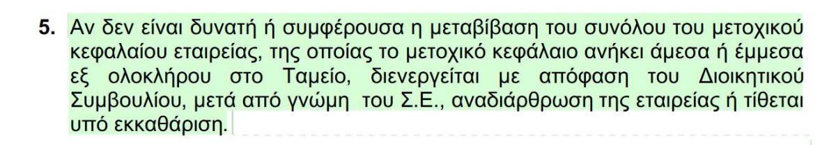 Ροδοπουλος Δημοσιεύτηκε June 17, 2013 at 03:11 μμ Δημοσιεύτηκε June 17, 2013 at 03:11 μμ Για πάμε να ξαναδιαβάσουμε τι ορίζει το μεσοπρόθεσμο του 2012 πριν πάμε στην ΕΡΤ, ΔΕΠΑ, ΟΣΕ, ΕΥΔΑΠ, ΟΠΑΠ, ΔΕΣΦΑ, κλπ Άρθρο 5 το βάζω απλά για να μην τρέφουμε ανησυχίες περι δημοκρατίας, θεσμών, κρατικής περιουσίας, κλπ. Ερωτώ όμως που ήταν η ΕΡΤ, ιδιωτικά κανάλια όταν υπογράφαμε το μεσο-πρόθεσμο. Που ήταν οι συνδικαλιστές? που ήσουνα Μπάμπη και Τράγκα, που ήσουν ΕΣΗΕΑ, ΤΕΕ, ΔΣΑ, κλπ. Τώρα είναι αργά για δάκρυα Στέλλα. Είπαμε με 30 δις κούρεμα το 2009 θα μπορούσαμε να έχουμε βιώσιμο χρέος. Εμείς βέβαια προτιμήσαμε να το κάνουμε 380 δις, μη βιώσιμο, με ανεργία +30%, χωρίς τράπεζες και με την Ελλάδα, κοινοβούλιο, κλπ σε υποθήκη. Και κάτι ΣΥΡΙΖΑ, Ανεξ. Ελλην, ΧΑ, ΚΚΕ ας διαβάσουν πρώτα το μεσοπρόθεσμο και μετά να το σκίζουν στο γόνατο. Αμ δε. Διότι γνωρίζουν οτι δεν μπορούνε οχι για κάποιο άλλο λόγο αλλά για το γεγονός οτι ακόμα και εαν το σκίσεις το ΤΑΙΠΕΔ θα ζει και θα βασιλεύει.
