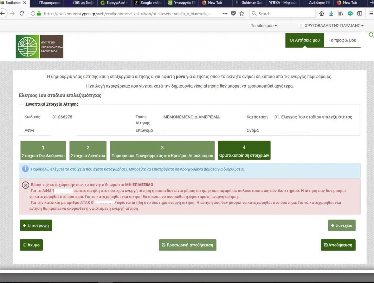 kontheod Δημοσιεύτηκε March 21, 2018 at 03:09 μμ Δημοσιεύτηκε March 21, 2018 at 03:09 μμ Τα στοιχεία της αίτησής σας δεν είναι πλήρη. Για να προχωρήσετε στο επόμενο στάδιο παρακαλώ διορθώστε τις παρακάτω εκκρεμότητες και ξαναπροσπαθήστε. 1. Βασικά Στοιχεία Αίτησης : Στοιχεία Ωφελούμενου : Δεν έχει γίνει επιβεβαίωση των οικονομικών στοιχείων από το TAXIS περιμένω κάποια έγκριση για να προχωρήσω; Οχι, ψάξε για κοκκινισμένα και κάνε διορθώσεις