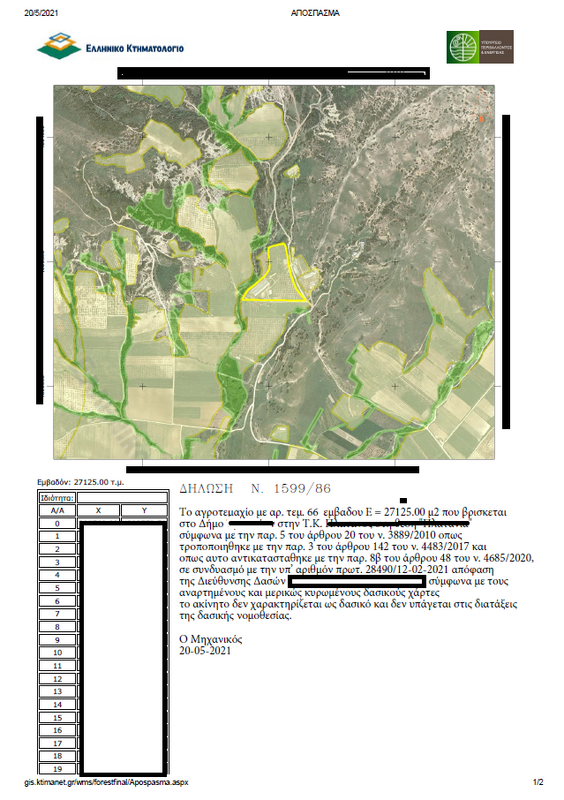 Elounda Δημοσιεύτηκε February 16, 2021 at 08:19 μμ Δημοσιεύτηκε February 16, 2021 at 08:19 μμ (edited) Για τις αποκλίσεις και άλλα . Επίσης μίνι κωδικοποίηση για τις ατελώς ενστασεις (οχι πρόδηλα ) 5.1 Γενικά Το σύνολο των στοιχείων των αντιρρήσεων, που έχουν καταχωριστεί στην κεντρική βάση και τα συνυποβαλλό- μενα στοιχεία/έγγραφα αυτών που τηρούνται στο ανα- λογικό αρχείο του ΣΥΑΔΧ, υπόκεινται σε επεξεργασία. 5.2 Επεξεργασία για τη μερική κύρωση του Δασικού Χάρτη Με την ολοκλήρωση των εργασιών του ΣΥΑΔΧ, με βάση τις παραδεκτές υποβληθείσες αντιρρήσεις, η ΕΚΧΑ Α.Ε. αποστέλλει στην αρμόδια Δ/νση Δασών σε αρχεία μορφής «shapefile», α) τις εκτάσεις δασικού/χορτολιβα- δικού χαρακτήρα για τις οποίες δεν ασκήθηκαν αντιρρή- σεις αφού ληφθούν υπόψη τα αναφερόμενα στην επό- μενη παράγραφο και β) τις παραδεκτές αντιρρήσεις. Η αρμόδια Διεύθυνση Δασών ή ο ανάδοχος προβαίνουν στις εργασίες που απαιτούνται να γίνουν προκειμένου να παραχθεί ο μερικά κυρωμένος δασικός χάρτης κατ’ εφαρμογή του άρθρου 17 του Ν. 3889/2010. Λόγω τεχνικών σφαλμάτων, ασαφειών και αποκλίσεων στον προσδιορισμό και στην αποτύπωση των πολυγώ- νων όμορων αντιρρήσεων, ενδέχεται να δημιουργούνται πολύγωνα μικρού εμβαδού (κάτω των 100 τ.μ.) ή λωρίδες μικρού πλάτους (μικρότερου ή ίσου των 2,5 μ.), μεταξύ των ορίων των εκτάσεων στις οποίες αφορούν οι αντιρ- ρήσεις. Τα ανωτέρω αυτοτελή τμήματα, στην κλίμακα απόδοσης του Δασικού Χάρτη (1:5.000), θεωρούνται ότι βρίσκονται εντός της «ζώνης συμβατότητας απεικόνι- σης» των αντιρρήσεων, η οποία είναι ζώνη πλάτους 2,5 μέτρων, που προσαρτάται σε κάθε μία από τις υποβλη- θείσες παραδεκτές αντιρρήσεις. Ο προσδιορισμός των δασικών ή χορτολιβαδικών εκτάσεων που θα εξαιρεθούν της μερικής κύρωσης περιλαμβάνει και τις εκτάσεις που ΦΕΚ 3532 Β 2016 ΥΑ ΑΠΟΚΛΙΣΕΩΝ ΔΑΣΙΚΩΝ.pdf Ατελης περιπτωσεις αντιρρήσεων .doc Edited February 16, 2021 at 10:08 μμ by Elounda
