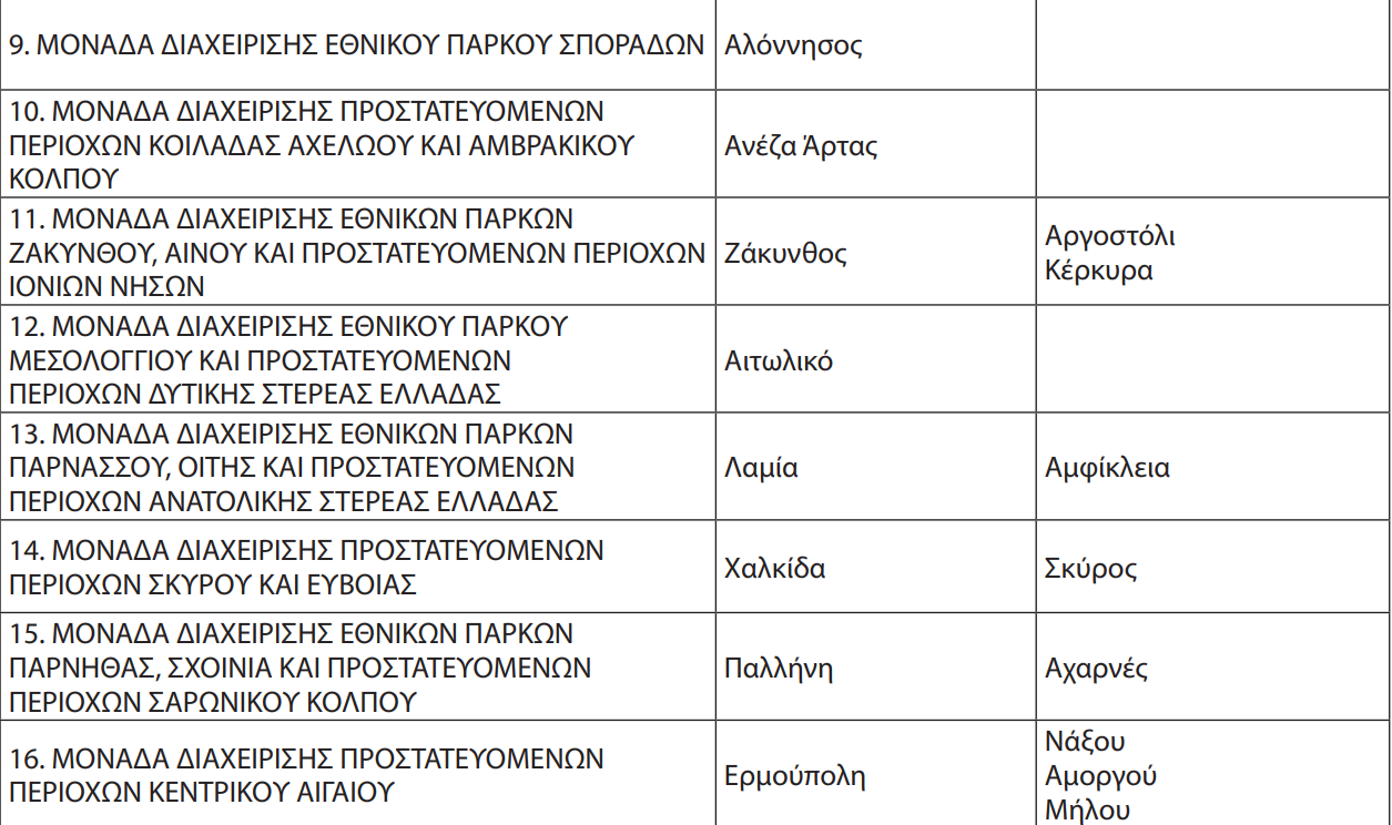 ΟΦΥΠΕΚΑ: Τροποποίηση του αριθμού και της χωρικής αρμοδιότητας των Μονάδων Διαχείρισης Προστατευόμενων Περιοχών με ΦΕΚ