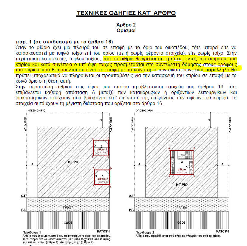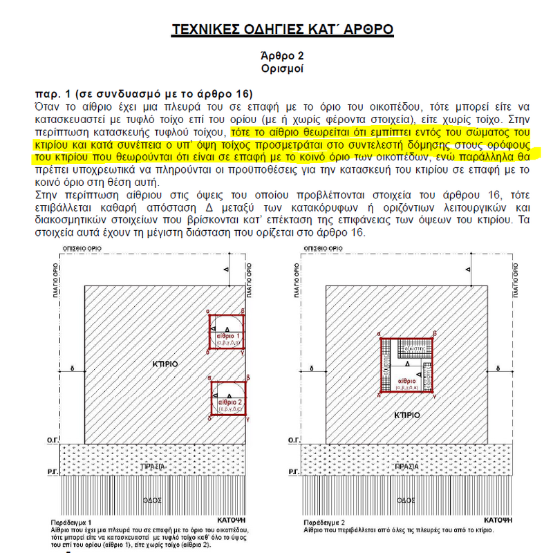 ΝΟΚ αρ. 2 παρ. 1. Αίθριο είναι το μη στεγασμένο τμήμα του κτιρίου, που περιβάλλεται από όλες τις πλευρές του από το κτίριο ή τα όρια του οικοπέδου, στο οποίο μπορούν να έχουν ανοίγματα, χώροι κύριας ή βοηθητικής χρήσης και εγγράφεται σε αυτό κύκλος διαμέτρου Δ. ΝΟΚ αρ. 2 παρ. 61. Περίγραμμα κτιρίου αποτελεί η προβολή επί του εδάφους όλων των χώρων του, που προσμετρώνται στην κάλυψη. ο ΑΗΧ μετράει σε κάλυψη άρα ναι αν εγγράφεται κύκλος διαμέτρου Δ θεωρείται αίθριο. Τι πρέπει να προσέξεις. Ο ΑΗΧ πρέπει να έχει άνοιγμα > 35% της περιμέτρου του (ΝΟΚ αρ. 2 παρ. 6) Τώρα από τις Τεχνικές Οδηγίες του ΝΟΚ επίσης πρέπει να προσέξεις τα εξής: 1η εικόνα: Οι τοίχοι μετράνε σε δόμηση και κάλυψη 2η εικόνα θες απόσταση Δ μπροστά από τον ΑΗΧ, ίσως σε επηρρεάζει και ο μισός τοίχος που φτιάχνεις στον αριστερά ΑΗΧ1 point