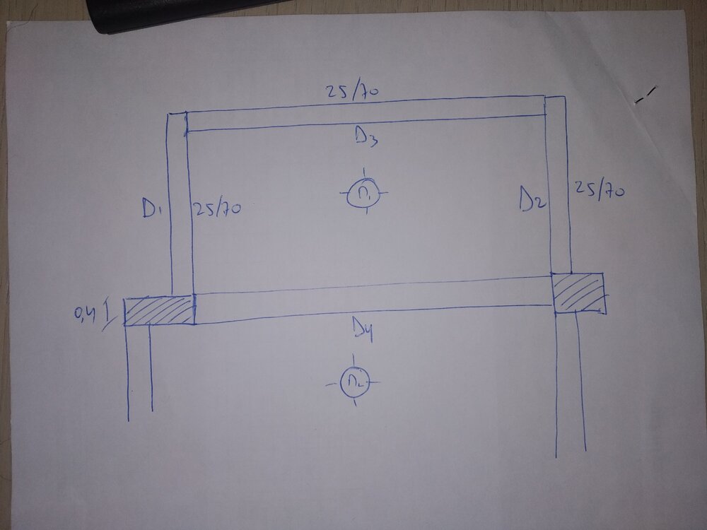 2. Καλησπέρα σας. Έχω μια ερώτηση σχετικά με μια στήριξη ενός μπαλκονιού. Μπορώ να βάλω δοκάρι μήκους 3.3μ και διατομής 25/70 πάνω σε υποστήλωμα 40cm κατά τη διεύθυνση του δοκαριού, προκειμένου να στηρίξω ένα μεγάλο μπαλκόνι; (δοκάρι Δ1) Ή Θεωρείται οτι δεν μπορεί να πακτωθεί τέτοιο δοκάρι σε τόσο μικρό υποστηλωμα; σας επισυνάπτω και αντίστοιχο σκαρίφημα.