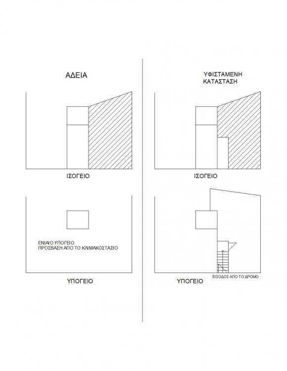 11. Καλημέρα στους συναδέλφους! Θα ήθελα να μου πείτε τη γνώμη σας για την περίπτωση διαφορετικής πρόσβασης στο υπόγειο (από το δρόμο αντι απο το κλιμασκοστάσιο της οικοδομής). Το υπόγειο απαικονιζόταν στα σχέδια σαν ενιαίος αδιαμόρφωτος χώρος. Το ισόγειο μίκρυνε κατά το εμβαδόν της σκάλας που οδηγεί στο υπόγειο. Αμφότερα έχουν τον ίδιο ιδιοκτήτη. (Ζητείται βεβαίωση για συμβόλαιο γονικής παροχής...)