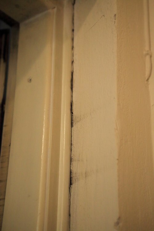 Η παρακάτω φωτογραφία ειναι έξω από το σπίτι, βλέπετε έχει μια ρωγμή ανάμεσα στην εξώπορτα και μέσα από εκεί βγαίνει μια μαυρίλα.