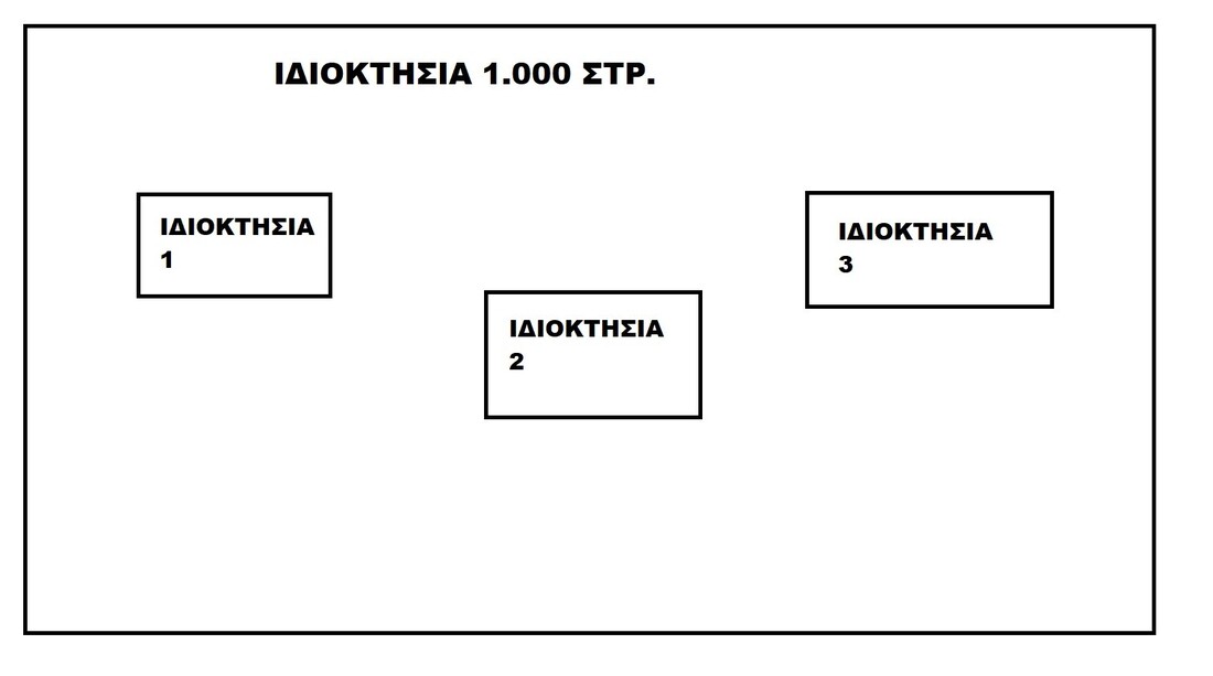 Έχω ένα μικρό οικόπεδο στο οποίο θα προσαρτήσω ένα τμήμα από όμορη ιδιοκτησία, λόγω δικαστικής απόφασης. Η όμορη ιδιοκτησία ωστόσο, είναι λίγο πολύ 1.000 στρέμματα. Οι ερωτήσεις μου είναι: 1) Πρέπει στο ΔΓΜ να συμπεριλάβω ολόκληρη την έκταση των 1000 στρεμμάτων, ή μπορώ μόνο ένα τμήμα αυτής, όπως πχ. γίνεται με τις ειδικές εκτάσεις; 2) Η έκταση αυτή έχει μέσα σε αυτήν και διάφορες διάσπαρτες εκτάσεις τρίτων. Είναι δηλαδή εσωτερικά δηλαδή της ευρύτερης έκτασης (όπως στο σκαρίφημα). Πως θα αποτυπώσω το topo prop σε αυτήν την περίπτωση; -