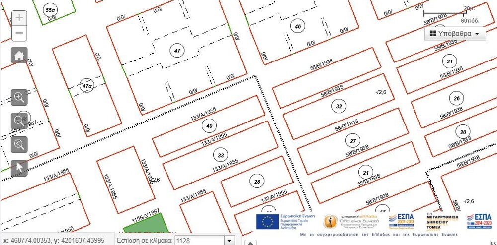 10. Αρχικά, ευχαριστώ για την απάντηση. Σχετικά με το πρώτο στη Νίκαια. Ανεβάζω printscreen από το e-poleodomia. Στη δεύτερη φωτό έχω τον κέρσορα πάνω στο ΟΤ 40 στο κέντρο του ΟΤ. Εγώ είμαι Χ:468791, Ψ:4201640 εντός του ΟΤ 40