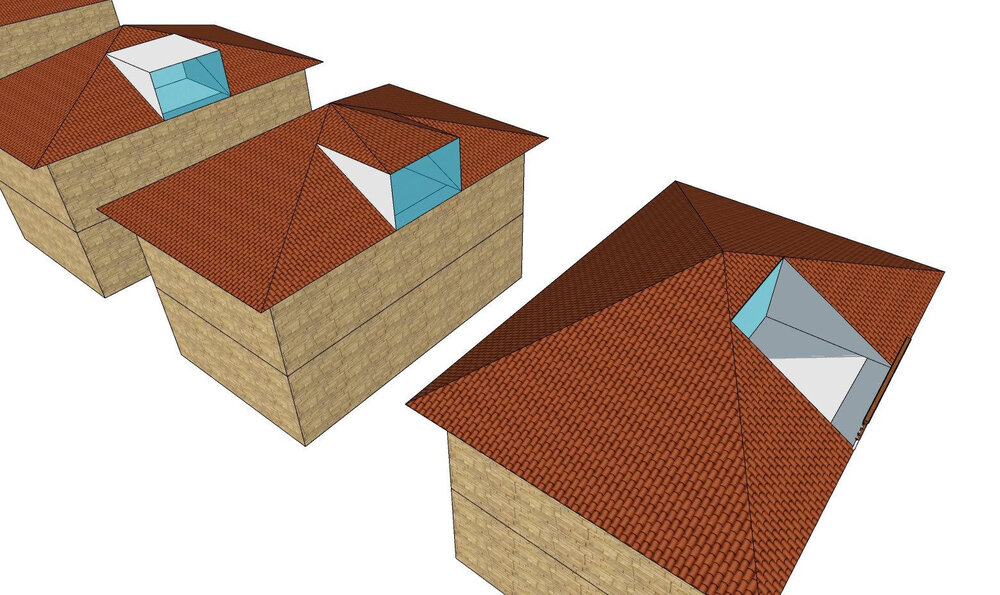 Καλησπέρα, σχετικά με σοφίτες - πατάρια, με το αν επιτρέπεται εξώστης σε στέγη, με την διατήρηση της στερεομετρίας της κλπ. παραθέτω τα εξής ερωτήματα: 1. Σε σοφίτα επιτρέπεται το παρακάτω σύστημα της Velux (υπόψιν ότι κλειστό θεωρείται παράθυρο, ενώ ανοιχτό μπαλκόνι)... 2. Επιτρέπεται σε 4ριχτη στέγη η δημιουργία ενός εκ των παρακάτω της τρισδιάστασης απεικόνισης; -