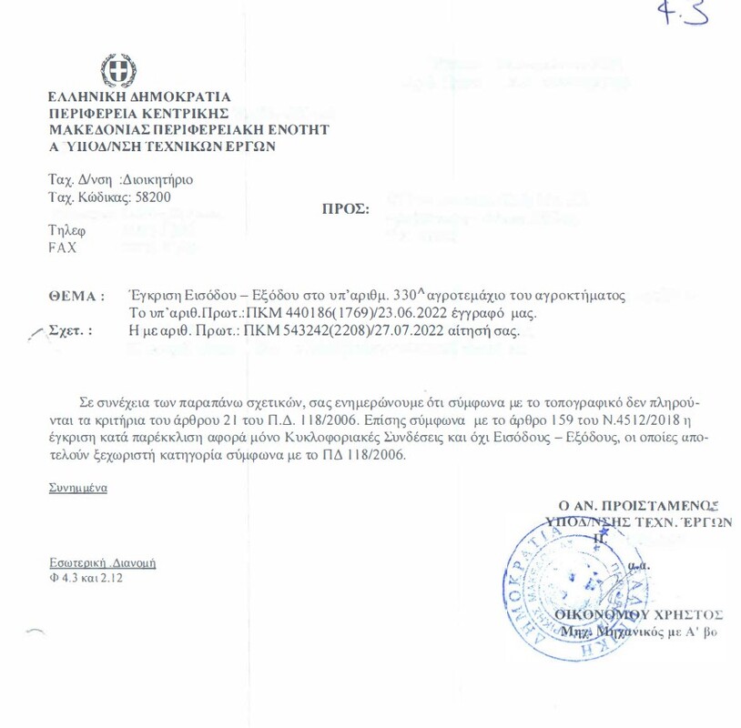 3. Το άρθρο 34 του β.δ. 465/1970 αντικαθίσταται ως εξής: «Άρθρο 34 Έγκριση κυκλοφοριακής σύνδεσης κατά παρέκκλιση 1. Σε εγκαταστάσεις που λειτουργούν με εγκεκριμένη κυκλοφοριακή σύνδεση κατά παρέκκλιση των κείμενων διατάξεων, επιτρέπονται νέες προσθήκες και αλλαγή της χρήσης μόνον εφόσον, κατόπιν μελέτης κυκλοφοριακών επιπτώσεων, αποδειχθεί ότι η νέα χρήση δεν επιφέρει αύξηση του κυκλοφοριακού φόρτου σε σχέση με την προηγούμενη χρήση. 2. Επιτρέπεται η έγκριση κυκλοφοριακής σύνδεσης κατά παρέκκλιση των κείμενων διατάξεων μόνον εφόσον, εξαιτίας των ιδιαίτερων χαρακτηριστικών του οικοπέδου της εγκατάστασης, δεν είναι εφικτή η τήρηση των προϋποθέσεων του παρόντος. Στην περίπτωση αυτή πρέπει να υποβληθεί μελέτη από μηχανικό που τεκμηριώνει ότι η διαφοροποίηση στην κατασκευή της κυκλοφοριακής σύνδεσης εξασφαλίζει την οδική ασφάλεια, προκειμένου να εγκριθεί από την αρμόδια για τη συντήρηση της οδού υπηρεσία. Δηλαδή μπορείς να ζητήσεις κατά παρέκλισση έγκριση είσοδο- έξοδο , σωστά καταλαβαίνω ? -