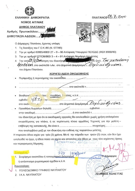 Καλησπέρα, Η φωτοτυπία και το σκανάρισμα που ακολουθεί πάντα χάνουν συνήθως. Για αυτό και έχω σχεδιάσει το περίγραμμα του οικοπέδου και του κτιρίου της αδείας από την αρχή, με τις διαστάσεις που δίνει. Σήμερα έλαβα και το καινούργιο τοπογραφικό. Κάνω Overlay τα περιγράμματα της αδείας με αυτά του νέου τοπογραφικού. Παραθέτω και τα σχετικά σκαριφήματα με τις διαστάσεις και εμβαδά οικοπέδου και κτιρίου. Επίσης η προεξοχή (0,46*3,82) φαίνεται κανονικά στην κάτοψη της άδειας. Skarifima.pdf