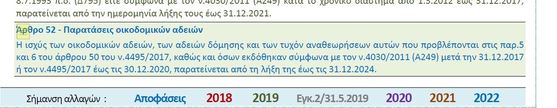 Καλησπέρα Σας επισυνάπτω την 1η έντυπη άδεια δόμησης πάνω στην οποία έχουν ακολουθήσει ηλεκτρονικές αναθεωρήσεις. Η ισχύς αυτής και οι αναθεωρήσεις της είχαν πάρει παράταση μέχρι 31/12/22. Σήμερα βάσει του Ν.4964/22 (επισυνάπτω και το σχετικό απόσπασμα) η άδεια αυτή και οι αναθεωρήσεις της εμπίπτουν στην νέα παράταση (δηλ. μέχρι 31/12/24)? Χρειάζεται να κάνω κάποια ενέργεια στην οικεία ΥΔΟΜ ή παίρνει αυτοδίκαια παράταση?