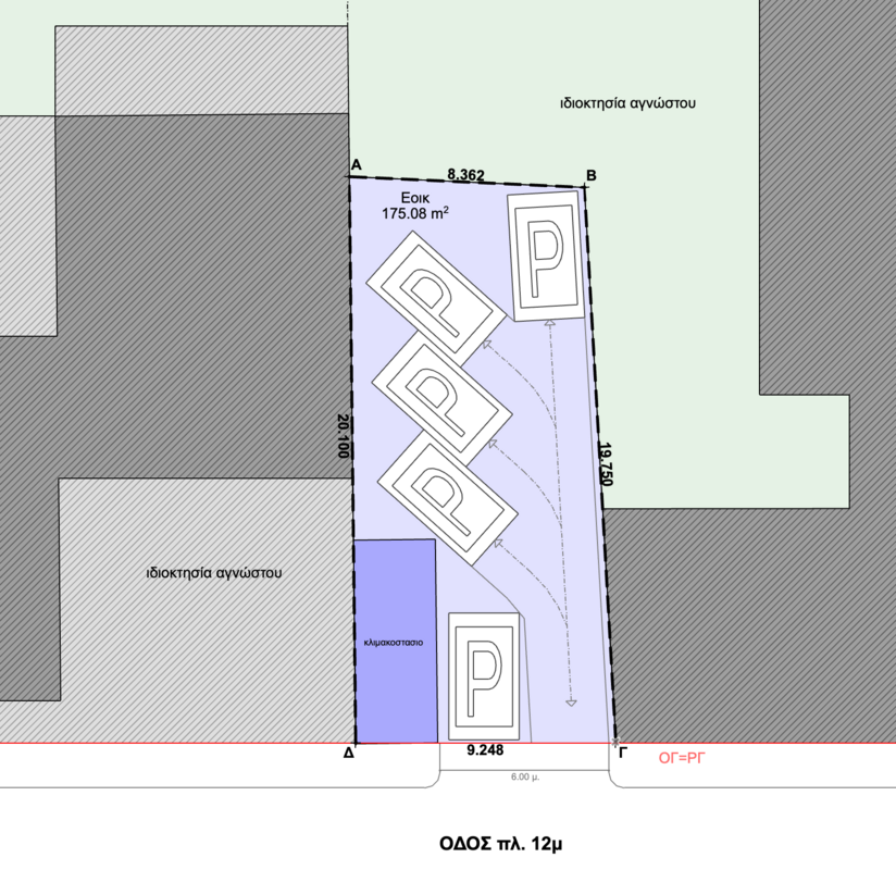 ανεβάζω και σχετική κάτοψη για το εν λόγο οικόπεδο, με προταση για 5 (ανοιχτές) θέσεις σταθμεύσεις που όμως είτε μπαίνουνε είτε βγαίνουνε μόνο με την μούρη