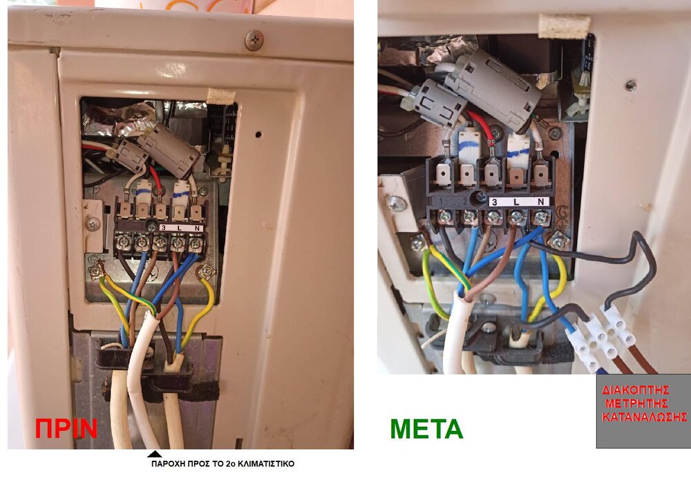 6. Ευχαριστώ για την απάντηση σας. Το "oριακά ΟΚ" φαίνεται απο το 2500 με 2200 ? Αν δεν ήταν, τι θα συνέβαινε ? Απο περιέργεια ρωτάω και για να μαθαίνω ! Οσον αφορά τον διακόπτη που είπατε δεν το κλείνω από το διακόπτη αυτόν αλλά μονο από το τηλεχειριστήριο του κλιματιστικού καθώς και απο άλλο ένα άλλο wifi τηλεχειριστήριο υπερύθρων. Μια επίσης απορία μου είναι αν ένα 2ο 12αρι ινβέρτερ κλιματιστικο που παίρνει ρεύμα σε σειρά απο την ιδια παροχή 25Α στον πίνακα (το εχω σημειώσει στη φώτο ΠΡΙΝ) επηρρεάζει σε κατι. Ο διακόπτης ελεγκτή που έβαλα στο 24αρι ειναι η λευκή κλεμα και τον έχω σημειώσει στο ΜΕΤΑ