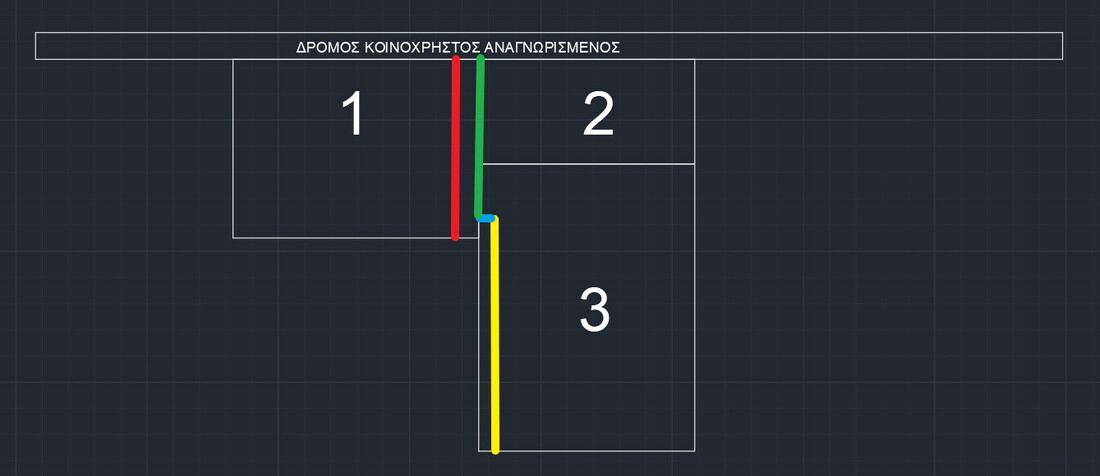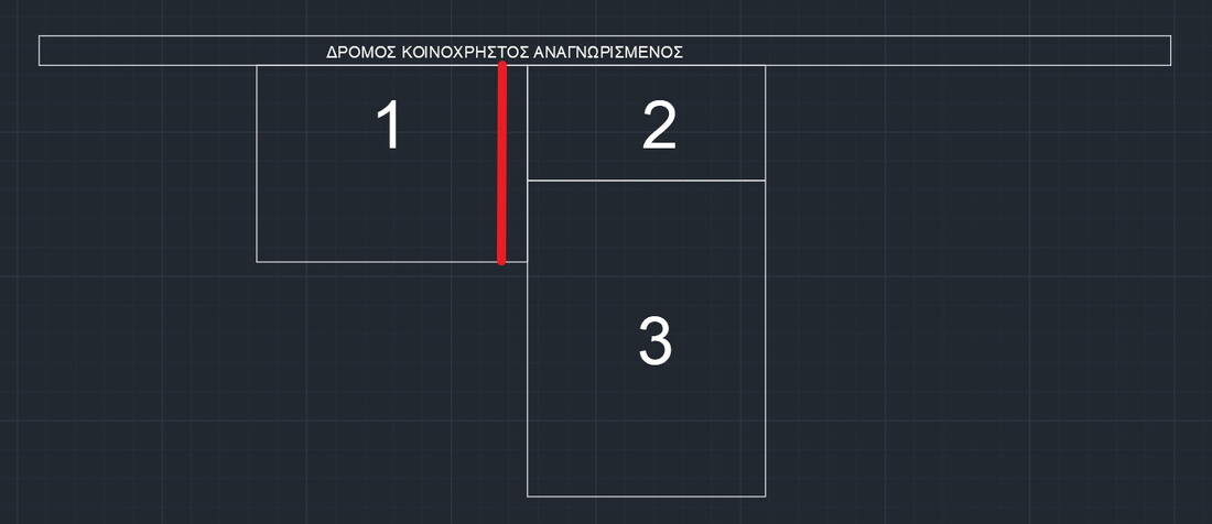 Καλησπέρα κύριοι, παραθέτω περαιτέρω ουσιαστικές πληροφορίες ώστε να προχωρήσει η συζήτηση . Πρόκειται λοιπόν για μια ιδιαίτερη και ερμαφρόδιτη κατάσταση που ίσως να έχετε ξανακούσει η οποία ισχύει μόνο στο νησί της Αίγινας. Για να αποφευχθεί η σύγχυση παρέλειψα να το αναφέρω, αλλά πρόκειται για μια Περιοχή που λέγονται Κατειργημενοι Οικισμοί. (ΦΕΚ 539δ/1989). Η Αίγινα λοιπόν κύριοι, γύρω από το σχέδιο πόλης της, εχει 17 Κατειργημενους Οικισμούς, και για να το μπλέξουμε ακόμα περισσότερο, οι 2 απο αυτούς θεωρούνται και προ του 1923. Πιο ευνοϊκή περίπτωση, καθώς αρτιότητα κατα κανόνα σε αυτούς είναι τα 4, στρ έναντι των 20 για τους υπόλοιπους, και επιπρόσθετα οτι επιτρέπεται κατάτμηση. Να σημειωθεί Το οικόπεδο βρίσκεται σε εναν απο αυτούς τους 2 Προ 23 Κατιεργημενους. Το εν λόγω οικόπεδο είναι 3 στρ. οπότε είναι άρτιο και οικοδομήσιμο ως μεγαλύτερο των 2.000 τ.μ. και κτίζει σύμφωνα με τον 270δ/1985. Το 2 έχει κτίρια, το 1 παραμένει ακόμα γη. Κανένας από τους 3 δεν σκοπεύει να δώσει ως προς τον άλλον ώστε να προκύψουν νεότερα ενιαία κομμάτια. Και ειδικά όπως απάντησα στον προηγούμενο κύριο που Ρώτησε, ο 2 εχει ήδη κτίσει και εξαντλήσει τον συντελεστή, οπότε ούτε στη πράξη μπορεί να υλοποιηθεί αυτή η σκέψη, ακόμα και αν οι ιδιοκτήτες σκόπευαν να κάνουν κάτι τέτοιο. Εχει δημιουργηθεί το 2004, οπότε δεν προβλέπεται οικοδομησιμοτητα ως τυφλό προ 1977, αν ρωτάτε για αυτό. Παρότι παραλειφθηκαν όλα αυτά απο το αρχικό Δημοσίευμα, με σκοπό να μην κουράσω, πιστεύω, και εδώ θέλω την γνώμη σας, πως η περίπτωση παραχώρησης τμήματος στο δημόσιο με σκοπό δημιουργία κοινόχρηστης οδού, είναι η μόνη λύση εφόσον αυτό καταστεί δυνατό. Δεν ανέφερα κάπου για πρόσοψη μήκους 4μ. γράφω ξεκάθαρα για δρόμο πλάτους 4μ. Απλά αυτό που ρωτάω καθώς όντως δεν εχω κατανοήσει, είναι ο κοινόχρηστος δρόμος με πλάτος 4μετρα, πόσο θα εκτείνεται μέσα στο οικόπεδο? Για παράδειγμα πρέπει να είναι από τον ηδη αναγνωρισμένο δρόμο εως το τέρμα νοτιότερο τμήμα όπως ρωτάω, δηλαδή έτσι Η αρκεί μονο ο Ιδιοκτητης 1, να παραχωρήσει τμήμα όπου σχηματίζεται δρόμος πλάτους 4μ, και ίσα που να ακουμπάει στη πλευρά του οικοπέδου 3, για παράδειγμα κάπως έτσι
