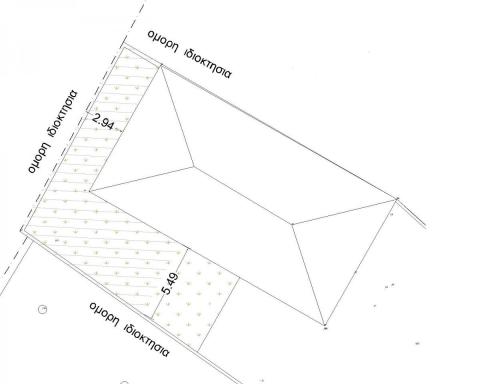 Καλησπέρα σας συνάδελφοι, 1. Mπορώ να καλύψω με προστέγασμα το γραμοσκιασμένο τμημα μεταξύ σπιτιου και ορίου ιδιοκτησίας ; (ειναι εντος οικισμου ) 2. Προσμετράται το προστέγασμα σε δόμηση και κάλυψη ; Σας ευχαριστώ πολύ.
