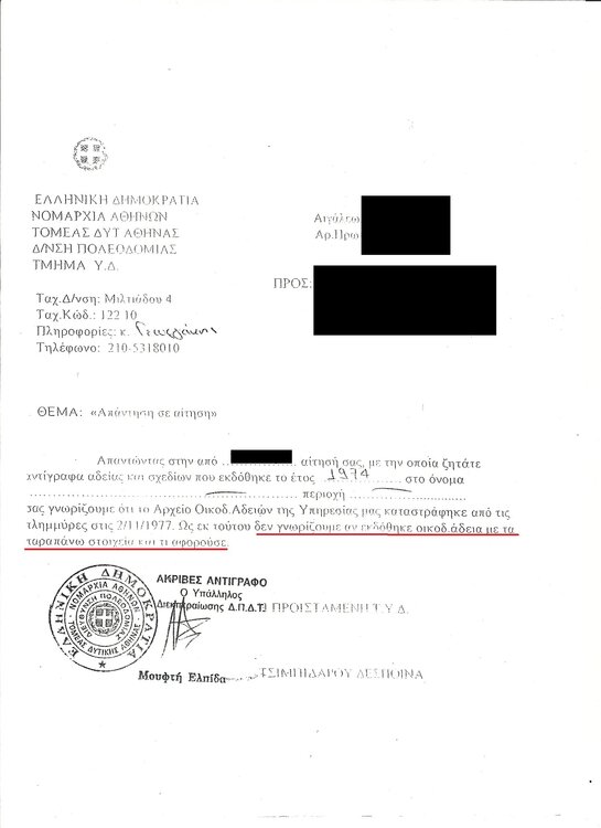 21. Εδώ που η ΥΔΟΜ λέει ότι λόγω καταστροφής αρχείου δεν ξέρει αν εκδόθηκε η άδεια και τι αφορούσε , και για την οποία ο ιδιοκτήτης έχει μόνο ένα απλό φωτοαντίγραφο τι κάνουμε ?