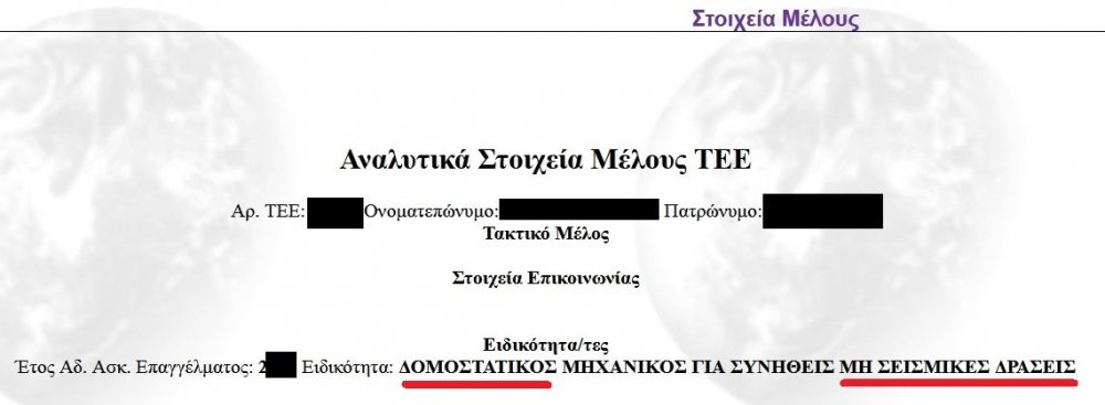 Την οποία όποιος δεν έχει διδαχθεί δυναμική των κατασκευών δεν μπορεί να υπολογίσει. Το συγκεκριμένο επαγγελματικό δικαίωμα μελέτης "για συνήθεις μη σεισμικές δράσεις" απεικονίζει κατά βάση αυτό το έλλειμμα γνώσης. Πιθανόν να σχετίζεται και με έλλειψη μαθημάτων αντισεισμικού σχεδιασμού κατασκευών.