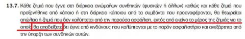 Μάλιστα , δηλαδή μας λες ότι 1. Οι ασφαλιστικές ΔΕΝ θα πληρώσουν διότι ΔΕΝ θεωρούν το γεγονός θεομηνία 2. Αν είναι θεομηνία πάλι ΔΕΝ θα πληρώσουν καθώς αυτή είναι στις εξαιρέσεις του ασφαλιστηρίου που παρέθεσες. (παρ.6 "φυσική διαταραχή" ) Κοντολογίς , όπως και να 'χει το πράγμα η ασφαλιστική ΔΕΝ πληρώνει γιατί έτσι γουστάρει , και σου λέει τράβα στα δικαστήρια κτλ ....