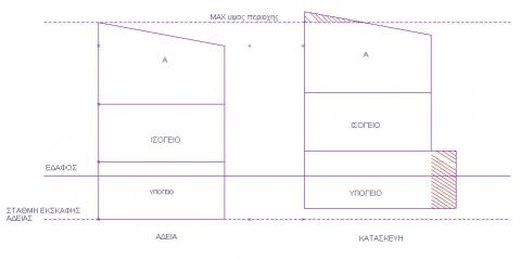 12. Διευκρινίζω ότι στην συγκεκριμένη περίπτωση το Hmax αδείας ταυτίζεται με το Hmax περιοχής. Οπότε , το υπερβαίνον το Υψος αδείας τμήμα είναι το διαγραμμισμένο τριγωνάκι της κεκλιμένης πλάκας. Γι αυτό ρωτάω.
