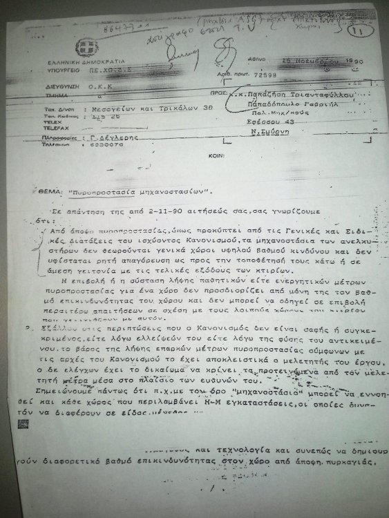 5. Καλησπέρα, έγγραφο του ΥΠΕΧΩΔΕ σχετικά με την επικινδυνότητα του μηχανοστασίου