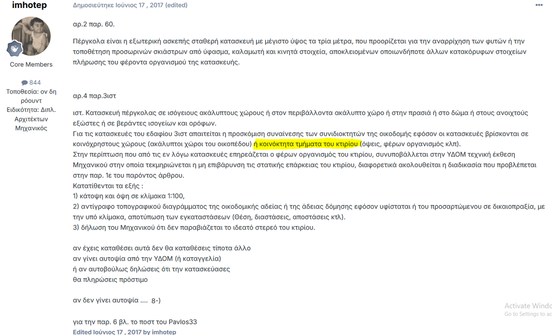 Η τελευταία απάντηση στην προηγούμενη σελίδα από το 2017 (ο ορισμός της πέργκολας έχει αλλάξει ωστόσο)