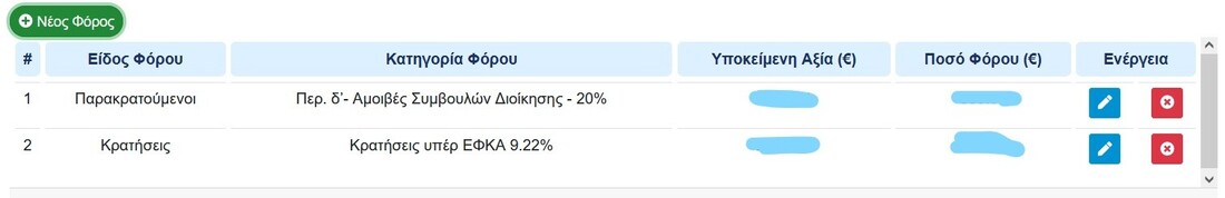 Όπως βλέπω τις κατηγορίες φόρου και τα ποσοστά τα εισάγεις εσύ στις "Κρατήσεις" που βρίσκονται στις ρυθμίσεις. Μάλιστα έτσι χειροκίνητα είχα προσθέσει και εγώ τις "Αμοιβές Συμβούλων Διοικησης 20%" αν και υπάρχει ήδη επιλογή στους παρακρατούμενους. Αρα φαντάζομαι πως είναι πιο σωστό να εισαχθεί μια νέα κράτηση 9.22% στις ρυθμίσεις και έπειτα να εισάγεται κάπως έτσι;