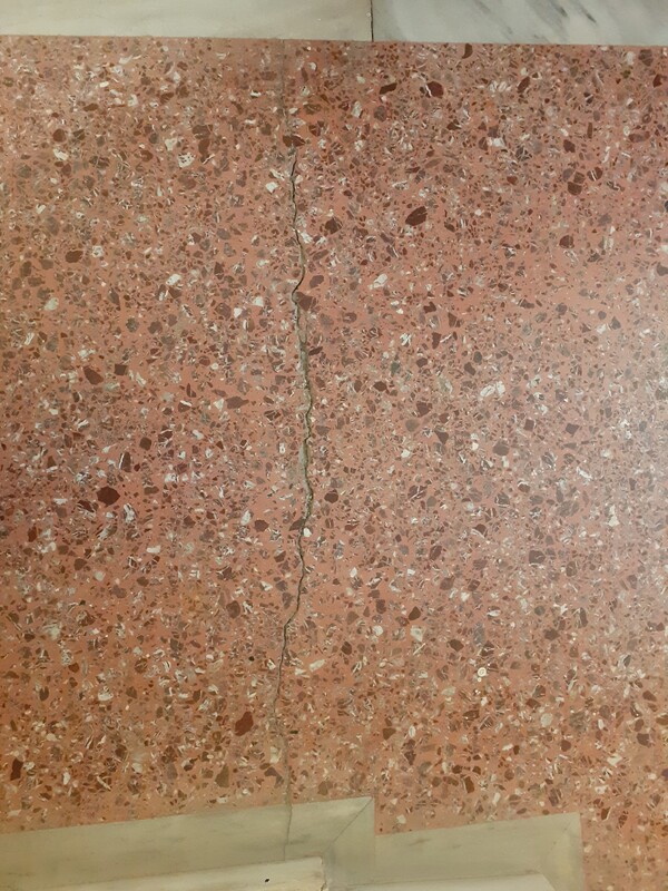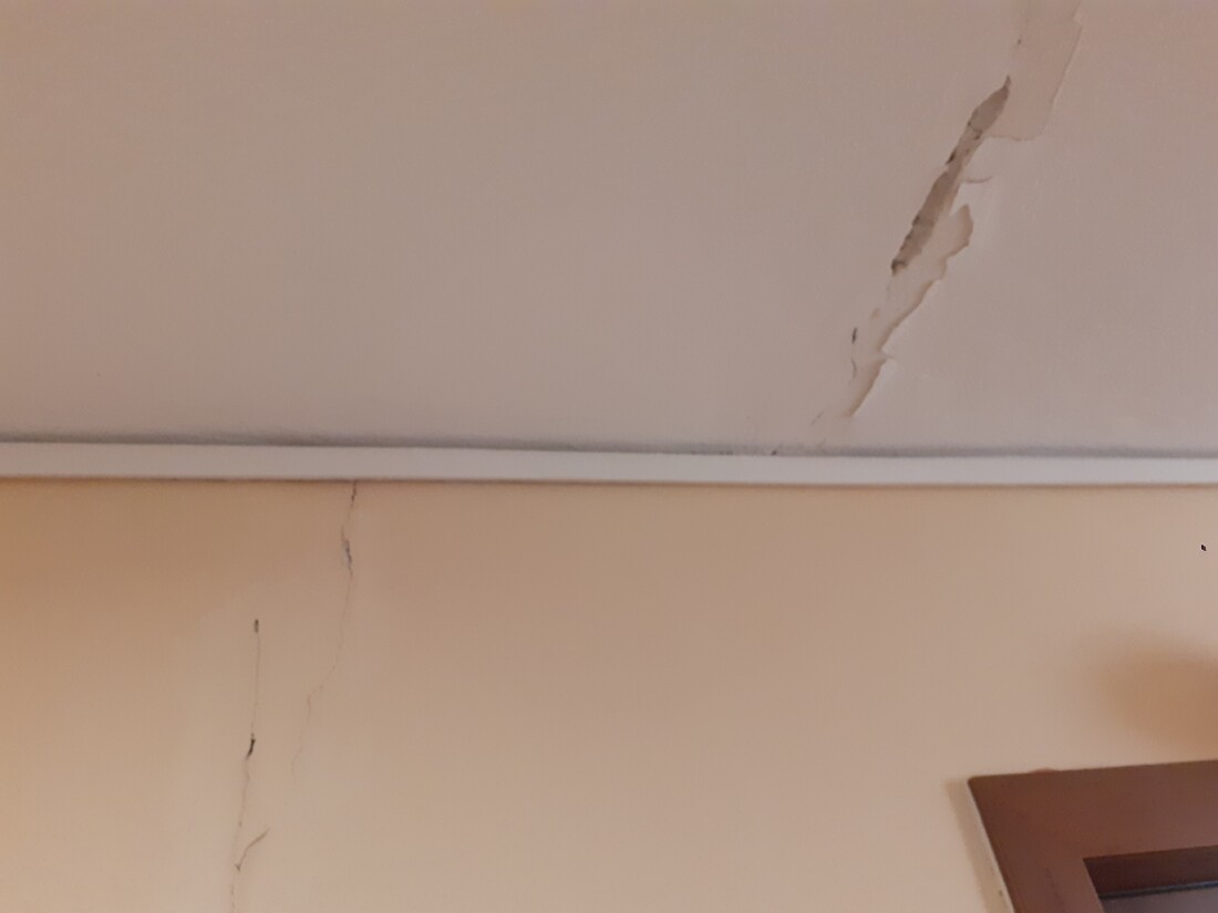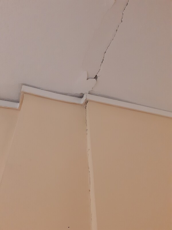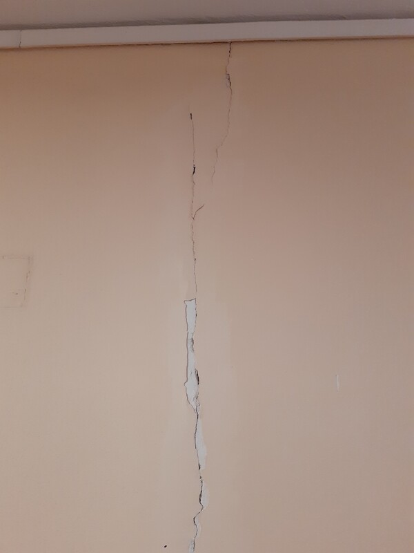 Πρόσφατα πρόσεξα ότι υπάρχει μία ρωγμή, η οποία επαναλαμβάνεται σε κάθε όροφο. Η ρωγμή είναι δίπλα στο ασανσέρ και υποθέτω δίπλα αλλά όχι πάνω σε κολώνα (δηλαδή σε γωνία). Δεν είναι διαμπερής ούτε μεγάλη σε πάχος, αλλά σε κάθε όροφο είναι ορατή και από τις 2 πλευρές του διαδρόμου, στο ταβάνι, και στο πάτωμα στο μωσαϊκό. Βγήκα έξω στον ακάλυπτο και είδα ότι απέξω φαίνεται στο ίδιο πάχος από κάτω μέχρι πάνω στην πολυκατοικία, κατακόρυφα. Είναι πιο έντονη στο ταβάνι και στο πάτωμα και πιο ορατή στον 3ο που βρίσκομαι και εγώ.