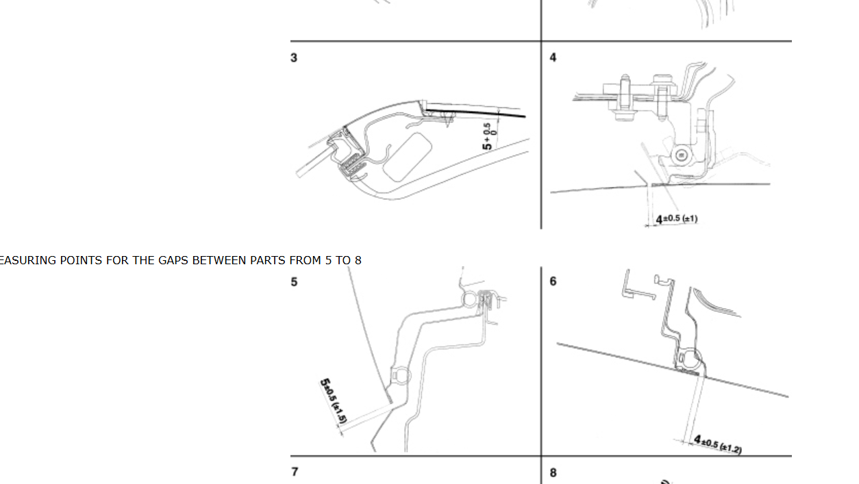 Εγώ! Τα διάκενα μεταξύ των πάνελ δίνονται στο technical documentation της εταιρίας. Αναζητάς κάτι τέτοιο! Βλάβη στους αισθητήρες μπορείς να διαγνώσεις με πολλούς τρόπους: από αυτοδιάγνωση, μέχρι live data, μέχρι παλμογράφο. Για μένα, η αυτοδιάγνωση που γίνεται με high-level scanner ειναι η καλύτερη λύση. Επιφάνεια: μετράς το πάχος του χρώματος με ειδικό όργανο, και με τραχύμετρο αν θέλεις να το πας μέχρι τέρμα. Εύκολο: από το tech doc βρίσκεις τους κωδικούς και ελέγχεις τι υπάρχει πάνω. Με ροπόκλειδο καταγραφής μέγιστης ροπής σε αποσυσφίξη, με τη λογική ότι δεν θα είναι κολλημένες. Γενικά, σε μη δομικά στοιχεία οι ροπές σύσφιξης δεν παίζουν και τόσο μεγάλο ρόλο. Έλεγχος αν έχουν αντικατασταθεί τυχόν torque to yeild bolts σε δομικά στοιχεία. Αν έχουν επηρεαστεί δομικά στοιχεία, ελέγχεις πώς επισκευάστηκαν: – Μπήκε καλίμπρα; – Δέθηκε σωστά, όπως ορίζει η εταιρία; – Αντικαταστάθηκε το εξάρτημα όπως πρέπει ή απλώς «τραβήχτηκε»; – Αν αντικαταστάθηκε, είναι σωστό το σημείο τομής; – Εφαρμόστηκαν οι κατάλληλες τεχνικές: ηλεκτροπονταρίσματα, συγκόλληση σύρματος ή χημική συγκόλληση, όπως ορίζει ο κατασκευαστής. Αξονομετρικά δεδομένα: μετράς τις αποστάσεις όπως ορίζονται στο tech doc. -