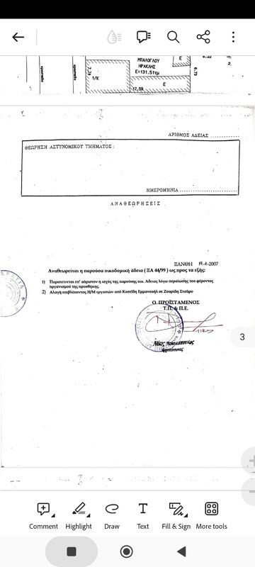 Έχω αυτό το χαρτί του 2006 του ηλεκτρολόγου και κάνω δεξιά που γράφει τον αριθμό πελάτη είναι ο αριθμός παροχής ρεύματος που έχω κι εγώ ακόμα. Άρα είχε μπει η χελώνα το 2006.μ γι'αυτό είπα ότι είχε ηλεκτροδότηση. Ναι έχω κάνει την αρχική αίτηση προέγκρισης και περιμένω να με καλέσουν ώστε να δώσω τα στοιχεία του ακινήτου. Αφήνω το χαρτί ηλεκτρολόγου από κάτω και έχω ήδη ζητήσει βεβαίωση πρώτης ρευματοδοτησης. Ότι μπορέσω να πάρω από χαρτιά θα τα πάρω και βλέπουμε. Απλά βλέπω ότι η άδεια εγκαταστάτη έληγε 16/04/2007 και στις 19/04/2007 έγινε η αναθεώρηση. Μήπως ήταν αυτός ο λόγος αναθεώρησης? Τι να πω δε ξέρω.