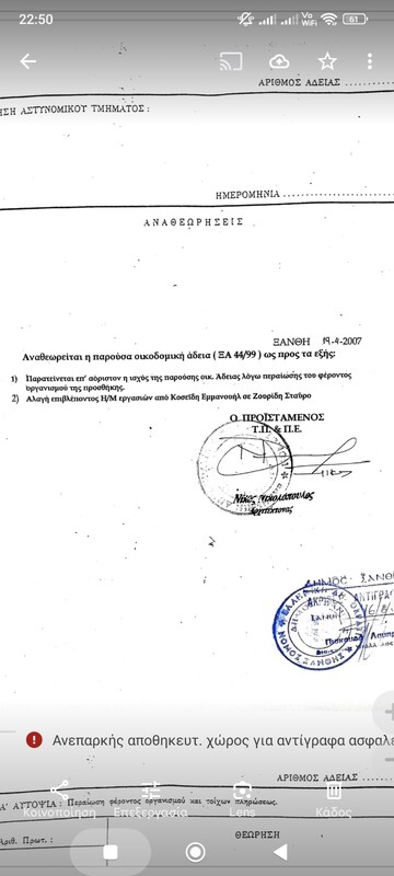Καλησπέρα και πάλι , μια τελευταία ερώτηση. Στην τρίτη σελίδα της άδειας γράφει αναθεώρηση Απρίλιο του 2007 αλλά στην τελευταία σελίδα την άδειας γραφει στο τέλος στη θεώρηση ως προς την αποπεράτωση 26/07/2007. Στέλνω τις 2 φωτογραφίες. Μήπως τελικά μπαίνει στο πρόγραμμα?
