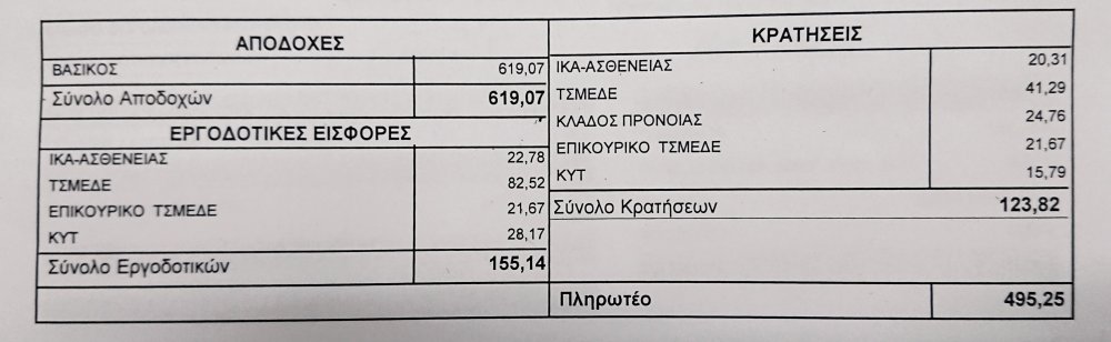 Για παράδειγμα, για τον μήνα Μάρτιο, μου είχε έρθει το '17 να πληρώσω στον ΕΦΚΑ 95,95€ πράγμα που έκανα. Η εκκαθάριση του ΕΦΚΑ για τον συγκεκριμένο μήνα δείχνει ότι μου επιστρέφει 85,95€ (εκτός των 10€ υπερ του ΟΑΕΔ). Συνεπώς αν καταλαβαίνω καλά αυτά τα 85,95€ τα έδωσε ο Δήμος ή είναι και από τις κρατήσεις του μισθού μου όταν δούλευα. Συνεπώς, πως «βγαίνουν» αυτά τα 85,95 όταν η αναλυτική ( εικόνα) από τον Δήμο εμφανίζει μεγαλύτερα ποσά ως κρατήσεις;;;
