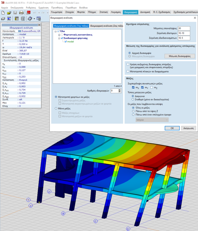 Καλησπέρα, Θα ήθελα να επισημάνω πως η στρεπτική ευαισθησία ενός φορέα μπορεί να αποτιμηθεί πλήρως βάσει των υπολογιζόμενων ιδιομορφών χωρικών μοντέλων, τα οποία αποτελούν και βάση της δυναμικής φασματικής ανάλυσης. Στα μη κανονικά κτίρια και γενικότερα σε πολύπλοκους φορείς είναι και η μόνη ασφαλής ανάλυση ενός φορέα για τον σχεδιασμό του. Με γνώμονα αυτό, το AxisVM προσφέρει όλα τα εργαλεία για να αποτιμηθεί εάν ένα κτίριο είναι στρεπτικά ευαίσθητο βάση των ιδιομορφών. Επιπλέον δίνονται πινακοποιημένοι οι έλεγχοι μεταθετότητας, σχετικών μετακινήσεων ορόφων κτλ όπως φαίνεται παρακάτω: ενώ παράλληλα επάνω στο μοντέλο φαίνονται τα κέντρα μάζας και ελαστικής στροφής: Σε σχέση με τους ελέγχους περίσφιξης που αναφέρετε έχετε δίκιο, και γι' αυτό άλλωστε είναι στα σχέδια μας να τα προσθέσουμε σε ερχόμενες εκδόσεις του λογισμικού.
