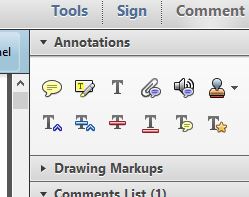 Υπογράμμιση ?! για adobe reader από τα tools πανω δεξια, επιλέγεις comment το κεφαλαίο Τ με υπογράμμιση είναι το underline. το μολύβι με το Τ σε κίτρινο φόντο είναι το highlight