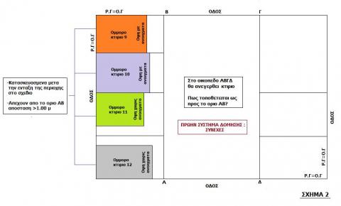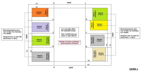 -Kan62:Ισχυει το 1 ή το 2? Γιατι εγω σε αυτα που εγραψα στο #160 νομιζω οτι για να εχουμε κοινο πλαγιο οριο πρεπει το κοινο οριο να ειναι πλαγιο τοσο για το οικοπεδο του υποανεγερση κτισματος οσο και για το ομμορο οικοπεδο ενω οταν το κοινο οριο ειναι πλαγιο για το νεο κτιριο και πισω για το ομμορο τοτε το κοινο οριο δεν ειναι κοινο πλαγιο οριο. -Βασιλη πιστευω οτι οταν εχουμε υποχρεωση αποστασης απο το κοινο οριο αυτη αφορα ολο το μηκος του κοινου οριου και οχι το μηκος που προβαλλεται ο ομμορος πανω στο κοινο οριο. Λοιπον θα σας πως και εγω την αποψη μου και οπου διαφωνουμε το συζηταμε : Σχημα 1 Κοινο οριο ΒΕ: Ειναι πλαγιο οριο τοσο για το υπο ανεγερση κτιριο οσο και για το οικοπεδο του ομμορου κτισματος 1 και αρα ειναι κοινο πλαγιο οριο. Το νεο κτιριο συμφωνα με την &1β εχει υποχρεωση αποστασης δ καθολο το μηκος του κοινου οριου ΒΕ.Αυτο γιατι : -Το κοινο οριο ειναι κοινο πλαγιο οριο -Tο πρωην συστημα δομησης της περιοχης δεν επετρεπε επαφη με το πλαγιο οριο -Το ομμορο κτιριο 1 απεχει και αποσταση>1.00 μ απο το κοινο οριο -Το ομμορο κτιριο 1 εχει ανοιγματα προς το κοινο οριο Κοινο οριο ΕΖ : Ειναι πλαγιο οριο για το υπο ανεγερση κτιριο και πισω οριο για το οικοπεδο του ομμορου κτισματος 2 και αρα δεν ειναι κοινο πλαγιο οριο. Το νεο κτιριο εχει την υποχρεωση να σεβαστει τον ακαλυπτο του ομμορου στο πισω του οριο και δεν τοποθετει συμφωνα με την &1β γιατι το κοινο οριο δεν ειναι κοινο πλαγιο οριο αλλα συμφωνα με την &1η και επομενως εχει υποχρεωση αποστασης δ καθολο το μηκος του κοινου οριου EZ Κοινο οριο ΖΗ : Ειναι πλαγιο οριο για το υπο ανεγερση κτιριο και πισω οριο για το οικοπεδο του ομμορου κτισματος 3 και αρα δεν ειναι κοινο πλαγιο οριο. Και παλι το νεο κτιριο εχει την υποχρεωση να σεβαστει τον ακαλυπτο του ομμορου στο πισω του οριο οποτε συμφωνα με την &1η εχει υποχρεωση αποστασης δ καθολο το μηκος του κοινου οριου ΖΗ. Το οτι ομμορο κτισμα 3 δεν εχει ανοιγματα προς το κοινο οριο δεν εχει σημασια καθως η &1η υποχρεωνει το το νεο κτιριο να εχει αποσταση απο το κοινο οριο θετωντας ως μοναδικη προυποθεση την υπαρξη ομμορου κτισματος σε αποσταση απο το κοινο οριο και δεν εξεταζει την υπαρξη ή οχι ανοιγματων προς αυτο. Κοινο οριο ΗΑ:Ειναι πλαγιο οριο τοσο για το υποανεγερση κτιριο οσο και για το οικοπεδο του ομμορου κτισματος 4 και αρα ειναι κοινο πλαγιο οριο. Το ομμορο κτιριο 4 μπορει να βρισκεται σε περιοχη που το πρωην συστημα δομησης της περιοχης δεν επετρεπε επαφη , μπορει να απεχει αποσταση>1.00 απο το κοινο οριο ,αλλα δεν εχει ανοιγματα προς αυτο οποτε δεν πληρουνται ολες οι προυποθεσεις που θετει η &1β και επομενως το νεο κτιριο εχει το δικαιωμα επιλογης τοποθετησης ως προς το οριο ΗΑ ειτε σε επαφη ειτε σε αποσταση δ. Κοινο οριο ΓΘ: Ειναι πλαγιο οριο τοσο για το υποανεγερση κτιριο οσο και για το οικοπεδο του ομμορου κτισματος 5 και αρα ειναι κοινο πλαγιο οριο. Το ομμορο κτιριο 5 ειναι κατασκευασμενο πριν την ενταξη της περιοχης στο σχεδιο και επομενως συμφωνα με την &1δ το νεο κτιριο εχει το δικαιωμα επιλογης τοποθετησης ως προς το οριο ΓΘ ειτε σε επαφη ειτε σε αποσταση δ. Κοινο οριο ΘΙ: Ειναι πλαγιο οριο για το υπο ανεγερση κτιριο και πισω οριο για το οικοπεδο του ομμορου κτισματος 6 και αρα δεν ειναι κοινο πλαγιο οριο. Δεν μπορει να εφαρμοσθει η &1δ που απαιτει κοινο πλαγιο οριο.Το κτιριο τοποθετει συμφωνα με την &1η. Η &1η δεν εξεταζει αν το ομμορο κτισμα ειναι κατασκευασμενο πρ