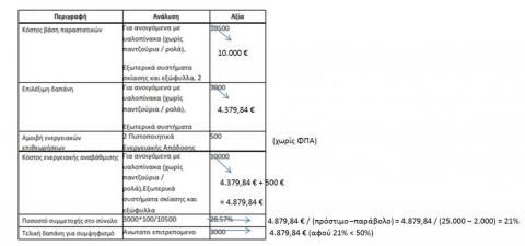 Συγγνώμη για την καθυστέρηση της απάντησης. Θεωρώ ότι στη στήλη "Μέγιστη δαπάνη (χωρίς ΦΠΑ)" μπαίνει η μέγιστη δαπάνη για το δεδομένο κονδύλιο (αυτή που δικαιολογεί το πρόγραμμα). Εν προκειμένω, για τα ανοιγόμενα κουφώματα : (280 * 19,24) / 1,23 = 4.379,84 ευρώ Μπορεί όμως ο πελάτης να μην έδωσε μόνο τόσα, αλλά για παράδειγμα 10.000 (χωρίς ΦΠΑ). Αυτό μπαίνει κατά τη γνώμη μου, στη στήλη "Κόστος Παραστατικών (χωρίς ΦΠΑ)". Και στην τελευταία στήλη μπαίνει το μικρότερο από τις δύο αριστερές στήλες. Δηλαδή αν έδωσε περισσότερα απ' ότι του δικαιολογεί το πρόγραμμα, θα μπει η δαπάνη του προγράμματος, αλλιώς αυτή που πραγματικά δαπάνησε για τις εργασίες. Αυτό γίνεται για κάθε εργασία ενεργειακής αναβάθμισης, δηλαδή κάθε γραμμή συμπληρώνεται από μία εργασία πχ στην επόμενη γραμμή θα μπει η δαπάνη για θερμοπρόσοψη, στην επόμενη γραμμή η δαπάνη για καυστήρα κ.ο.κ. Έπειτα, στο δεύτερο πινακάκι που συμπλήρωσες και έχει τίτλο "Σύνοψη", γίνεται ακριβώς η σύνοψη και η σύγκριση με το 50% που λέει ο νόμος. Δηλαδή : Κόστος βάσει παραστατικών : αυτά που έδωσε πραγματικά ο πελάτης. Επιλέξιμη δαπάνη : min(κόστους παραστατικών ; αυτών που του δικαιολογεί το πρόγραμμα) --έστω Α Αμοιβή εν. επιθεωρήσεων : η αμοιβή χωρίς ΦΠΑ --έστω Β Κόστος ενεργειακής αναβ. : Α + Β Ποσοστό συμμετοχής στο σύνολο : [(Α + Β) / (πρόστιμο - παράβολο)] --έστω x% Τελική δαπάνη για συμψηφισμό : Αν x% < 50%, τότε μπαίνει το A+B Αν x% > 50%, τότε μπαίνει το 50% * (πρόστιμο - παράβολο). Αυτά βέβαια είναι η δική μου άποψη στο πώς συμπληρώνεται ο πίνακας. Δεν την έχω επιβεβαιώσει με κανένα help desk ή οτιδήποτε. Απλά, το θεωρώ πιο λογικό. Οποιαδήποτε γνώμη ευπρόσδεκτη. ---------------------------------------------- Επίσης σε ότι αφορά κάποια ερωτήματα που έθεσε ο συνάδελφος sakaflias στο # 173, επικοινώνησα με το τοπικό ΤΕΕ και μου επιβεβαίωσαν ότι το 50% λογίζεται επί του αρχικού προστίμου (πριν την έκτπωση). Ο πελάτης μπορεί να επιλέξει ακόμη και το σχήμα του εφάπαξ. [παράδειγμα: υπάγεται στο Ν. 4178 την αρχή του εξαμήνου, πληρώνει το παράβολο, κάνει το 1ο ΠΕΑ, κάνει τις εργασίες ενεργ. αναβάθμισης, μαζεύει όλα τα παραστατικά, κάνει 2ο ΠΕΑ, πάει και πληρώνει εφάπαξ το υπόλοιπο ποσό μέχρι το τέλος του εξαμήνου με έκτπωση 20% (έχει το χρονικό περιθώριο να το κάνει)].