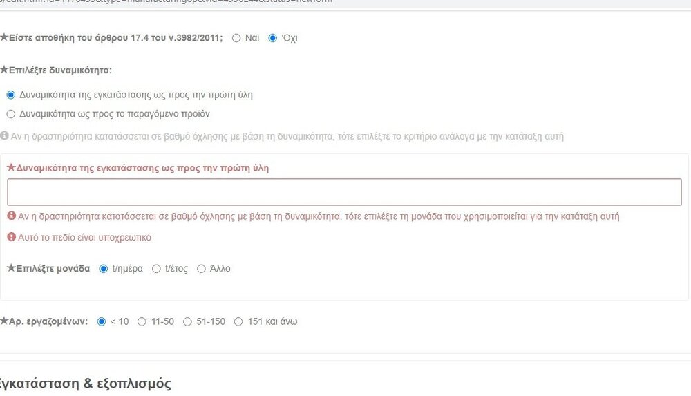 Καλησπέρα, θέλω να βγάλω άδεια λειτουργιας μεσω notifybusiness Για catering. Σε κάποιο σημείο ζητάει να βάλουμε ως κριτήριο της όχλησης την δυναμικότητα ως προς την Α΄ύλη ή ως προς το παραγόμενο προϊόν..στο catering ο βαθμός όχλησης βγαίνει από την ισχύ των μηχ/των και όχι από την δυναμικότητα. τι να κάνω σε αυτη την περίπτωση?