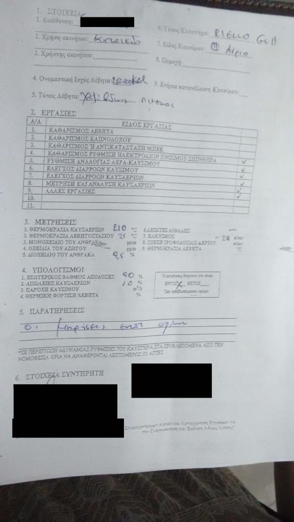 Ανεβάζω το φύλλο συντήρησης το οποίο είναι από το 2012 καθώς ο λέβητας έχει να χρησιμοποιηθεί από τότε. Από όσα είπες (ευχαριστώ) και βλέποντας και το φύλλο συντήρησης πάω να πιάσω ένα αυγό και να αρχίσω το κούρεμα!!! (είναι και στη μόδα η συγκεκριμένη λέξη) Τι κάνουμε σ' αυτές τις περιπτώσεις; ζητάμε νέο φύλλο ή καταχωρούμε την ονομαστική ισχύ του λέβητα; Ευχαριστώ και πάλι