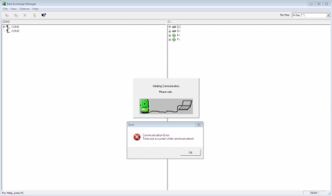 Καλημέρα και σε ευχαριστώ για την βοήθεια!!! Από το menu → conf → interface → είναι επιλεγμένα τα εξής : BAUD = 9600 PARITY = EVEN ENDMARK = CR/LF Που αντιστοιχούν με τις ρυθμίσεις του προγράμματος. Πήρα ένα καλώδιο μετατροπής της εξόδου του αρχικού καλωδίου του μηχανήματος σε USB για να καλύψω την πιθανότητα μη αναγνώρισης του παλιού καλωδίου επειδή έχω Windows 7. Αυτό που άλλαξε στο παράθυρο του Data Exchange Manager του προγράμματος είναι η παρακάτω εικόνα με την εμφάνιση του COM5 χωρίς όμως να μπορεί να κάνει πάλι επιτυχημένη σύνδεση με το μηχάνημα!!
