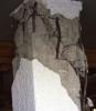 εστειλα email terry πως τα πάω? Η ύπαρξη χλωριώντων στο σκυρόδεμα προέρχεται είτε απο πρωτογενή είτε απο δευτερογενή αίτια. Η ύπαρξη CaCl2 σε ποσοστό μεγαλύτερο απο 2% κατα ASTM D98 στό μίγμα για την γρήγορη σκυροδέτηση και την μείωση του κόστους είναι γεγονός σε σκυροδέματα που χρησιμοποιήθηκαν πριν την δεκαετία του 80 καθώς επιίσης και απο την χρήση υφάλμυρου νερού κατά την μίξη. Ακόμα σε πολλές περιπτώσεις, η ύπαρξη CaCl2 οφείλεται στην χρήση μη καθαρών αδρανών απο παραθαλάσσιες περιοχές. Στα δευτερογενή αίτια έχουμε την υψηλή συγκέντρωση στήν περιβάλλοντα υγρασία κοντά σε παραθαλάσσιες περιοχές. Η διάχυση των χλωριδίων απο τον εξωτερικό περιβάλλον στο σκυρόδεμα είναι μια διαδικασία σύνθετη και όπως και η ενανθράκωση επηρεάζεται απο τις θερμοκρασιακές συνθήκες. Σε γενικές γραμμές ο ρυθμός προσβολής αυξάνεται με την θερμοκρασία. Σε αντίθεση με την ενανθράκωση η αλκαλικότητα του σκυροδέματος δεν μειώνεται. Παρολαυτά τα ιόντα καταστρέφουν την τοπική παθητικότητα του οπλισμού δημιουργώντας τοπικές εξαχνώσης, εικόνα 1 και 2. Το πρόβλημα των τοπικών αυτών εξαχνώσεων είναι η δημιουργία τοπικής συγκέντρωσης τάσεων που στις περισσότερες φορές ξεπερνάει έναν συντελεστή του 3. Με άλλα λόγια, η δυνατότητα του οπλισμού να παραλαμβάνει ελαστικά/στατικά φορτία μειώνεται. Τα αποτελέσματα στη καλύτερη των περιπτώσεων είναι ο πιθανός λυγισμός του φορέα, εικόνα 3 και η μείωση των διατμητικών αντοχών. Στην περίπτωση εξαγνώσεων με ελλειπή διάταξη συνδέσμων το πρόβλημα μπορεί αν οδηγήσει σε καταστροφική αστοχεία, εικόνα 4. Τα παραπάνω αποτελούν βασικό πρόβλημα σεισμικής τρωτότητας. Ο κανονισμός EN 14629 και ACI 2001 καθορίζει ότι εαν η συγκέντρωση των χλώριώντων είναι μεγαλυτερη απο 0.6% κατά μάζα σκυροδέματος τότε η πιθανότητα για εξαγνωση του οπλισμού είναι μεγάλη (τυπικό όριο). Η παραπάνω τιμή επηρεάζεται απο την θερμοκρασία και την υγρασία του σκυροδέματος. Για υγρασία μεγαλυτερη απο 46% η τιμη του ορίου αθξάνεται στα 0.8% και σε περιπτώσεις υψηλής θερμκρασίας > 34ο κελσιου στα 1.5% κατά ASTM 1218. Όπως αναφέρθηκε προηγουµένως, κύριο προϊόν της ενυδάτωσης των πυριτικών φάσεων του τσιµέντου είναι το CaO, το οποίο µετατρέπεται σε Ca(OH)2. Η ουσία αυτή είναι υπεύθυνη για το αλκαλικό περιβάλλον των πόρων του σκυροδέµατος, περιβάλλον απαραίτητο για την προστασία του χάλυβα του σκυροδέµατος. Το Ca(OH)2 όµως αντιδρά εύκολα µε το CO2 του ατµοσφαιρικού αέρα και παρουσία υγρασίας µετατρέπεται σε CaCO3. Η αντίδραση αυτή παρατίθεται κατωτέρω: εικόνα 1α Η αντίδραση αυτή, γνωστή ως ενανθράκωση του σκυροδέµατος, δεν έχει αρνητικές επιπτώσεις στις ιδιότητες του ίδιου του σκυροδέµατος. Αντίθετα έχει σε ορισµένες περιπτώσεις παρατηρηθεί µία ελαφριά αύξηση της αντοχής λόγω του σχηµατισµού του ανθρακικού ασβεστίου. Το σηµαντικότερο αποτέλεσµα της παραπάνω αντίδρασης είναι η κατανάλωση Ca(OH)2 προς σχηµατισµό CaCO3, µε αποτέλεσµα τη µείωση της αλκαλικότητας του περιβάλλοντος των πόρων του σκυροδέµατος (πτώση του pH του διαλύµατος των πόρων). Όταν η τιµή του pH µειωθεί κάτω του 11.4, το προστατευτικό στρώµα του χάλυβα αρχίζει να ρηγµατώνεται και τελικά καταστρέφεται πλήρως όταν το pH του διαλύµατος των πόρων πέσει κάτω από την τιµή 9. Τότε ο χάλυβας του σκυροδέµατος αρχίζει να σκουριάζει, σύµφωνα µε τη διαδικασία που αναφέρθηκε ανωτέρω. Η αντίδραση της ενανθράκωσης ξεκινάει από την εξωτερική επιφάνεια του 
